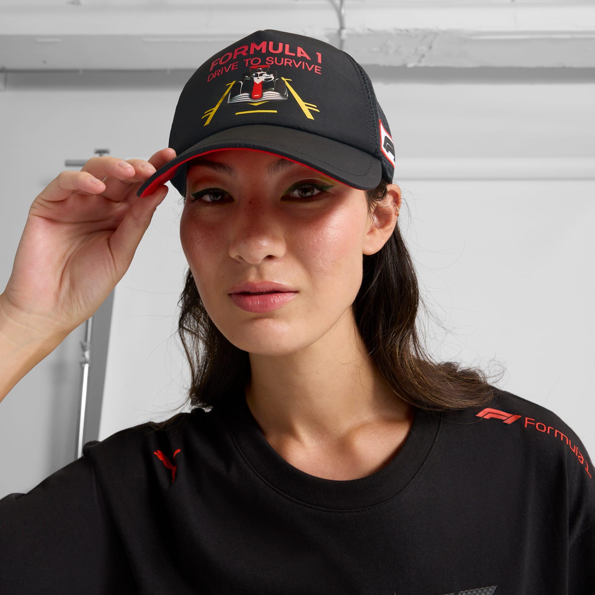 Get ready to turn heads with this 5-panel cap featuring an HD graphic print on the visor with a glossy effect. The double row snapback closure ensures a secure fit, while the F1® design adds a dynamic touch. Show off your sporty pride with PUMA's bold style.