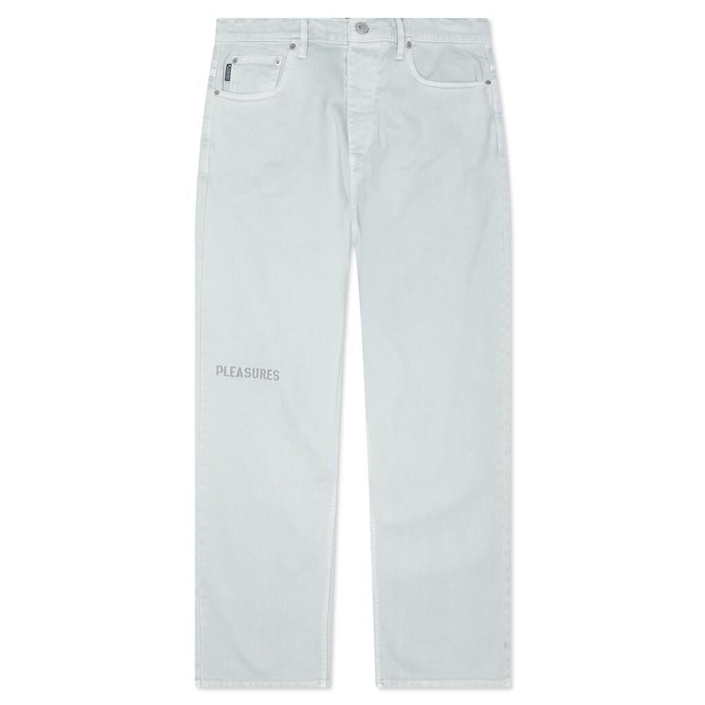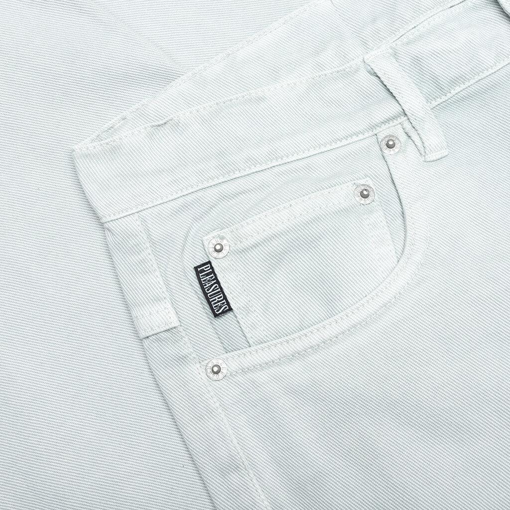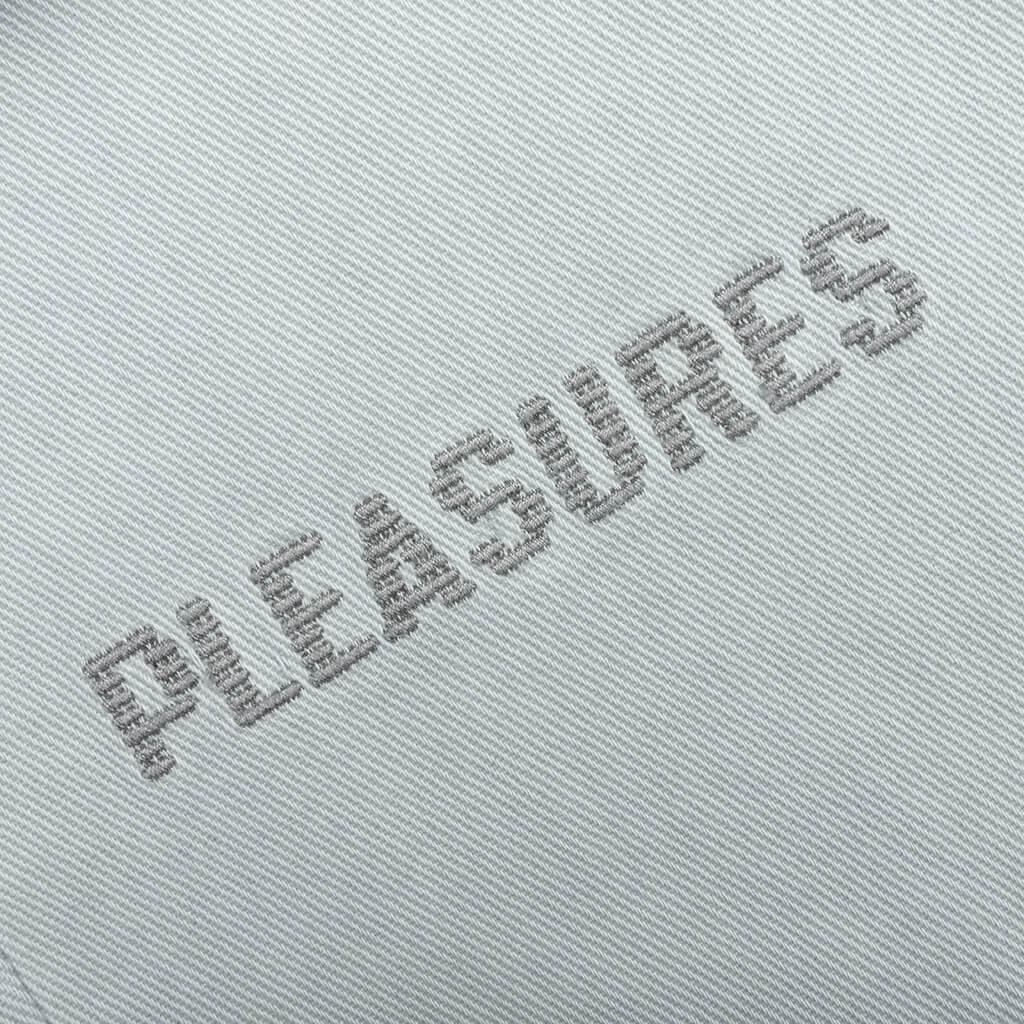 Pleasures introduces the Formula Baggy Pants in its latest collection. With a baggy silhouette, these pants are perfect for casual wear or on-the-go activities. Crafted from heavyweight cotton, it features a 5-pocket design, button fly, and belt loops. The look is completed with branding details like an embroidered logo and a custom leather patch on the waistband. 100% Cotton Baggy fit Button fly 5-pocket design Embroidered 'Pleasures' logo Pleasures branding Debossed leather patch Style no: P25SU039-GREY P25SU039 LIGH