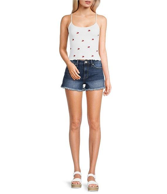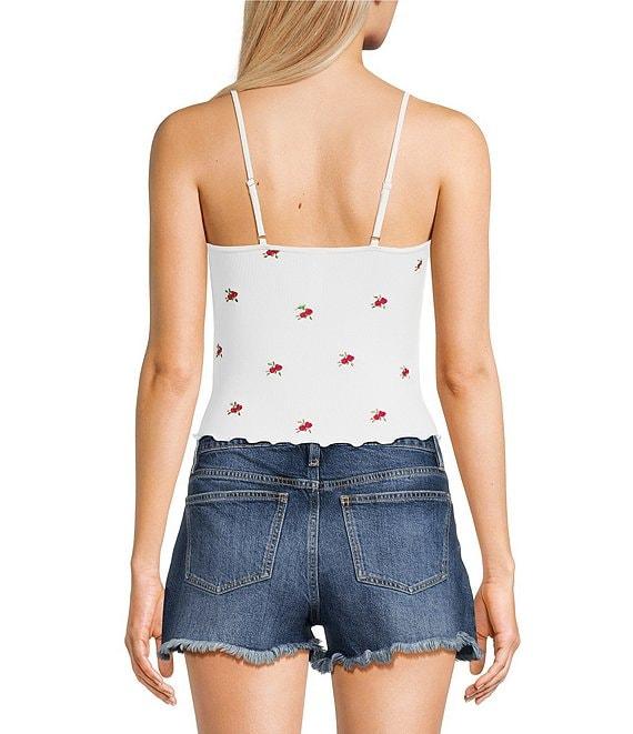 Fornia Seamless Embroidered Roses Spaghetti Strap Camisole Top