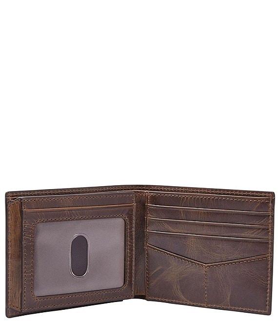 From Fossil, this wallet features: Derrick Flip ID bifold 8 credit card slots 2 ID windows 2 slip pockets 1 bill compartment Derrick bifold with modern details such as sliding 2-in-1 slots Clear id pocket Special lining to help protect the radio frequency identification (rfid) chips in your credit and debit cards from unwarranted scanning Leather with polyester interior Measurements: 4.5"L x 0.75"W x 3.5"H Imported.