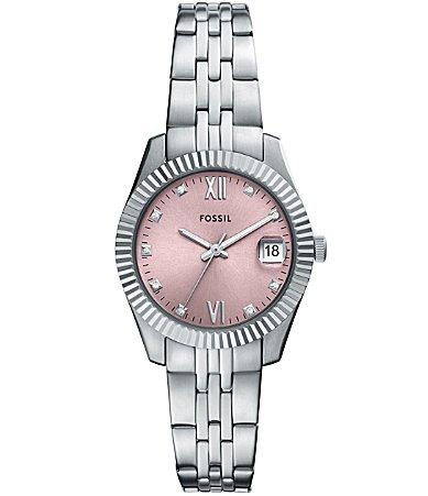 From Fossil, this womens watch features:Stainless steel bracelet and casePink sunray dialDouble press deployant buckle closureThree-hand movementCase size approx. 32mmCase thickness approx. 10mmBand width: 16mm Inner circumference: 175 /- 5mmWater resistance: 5 ATMImported.