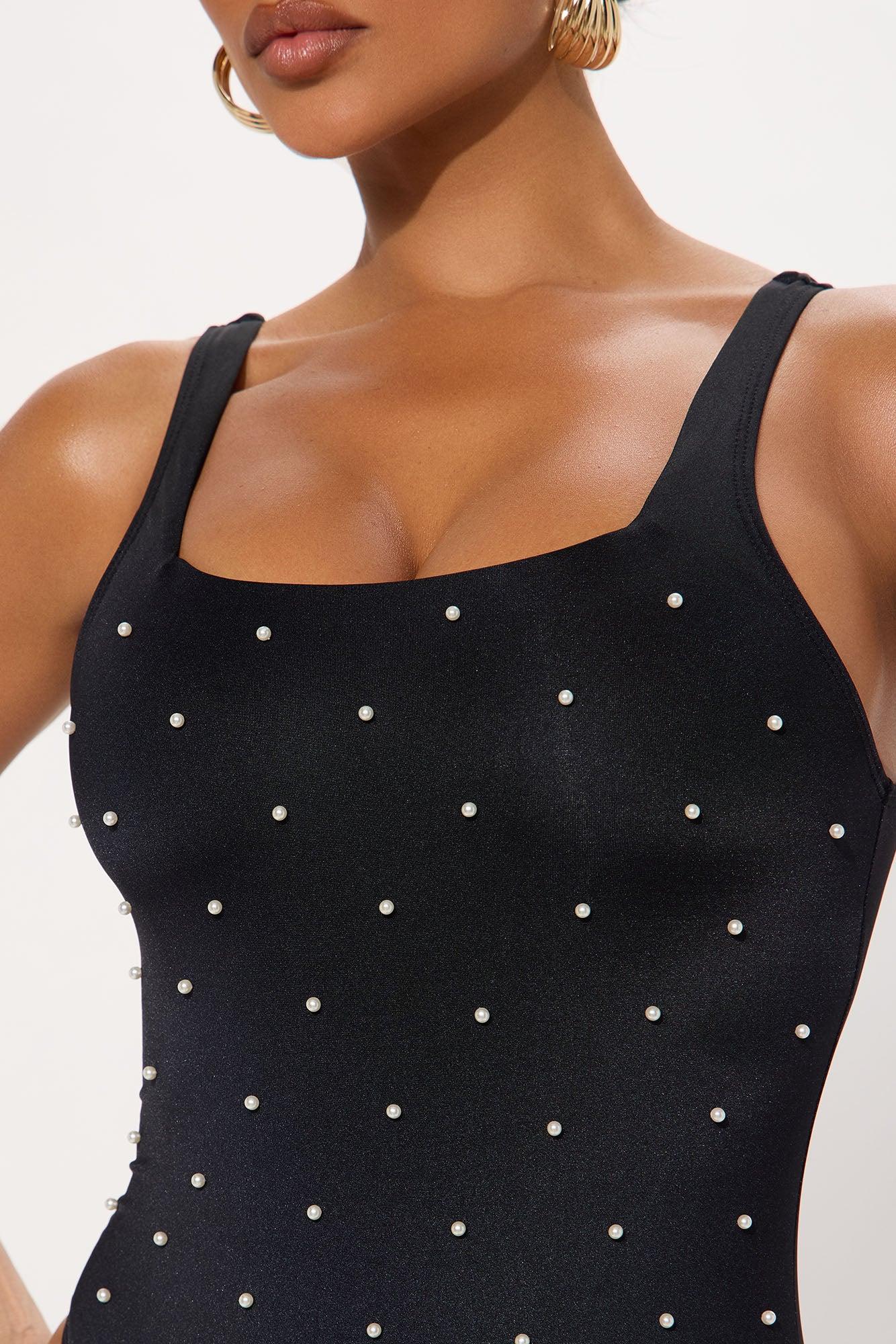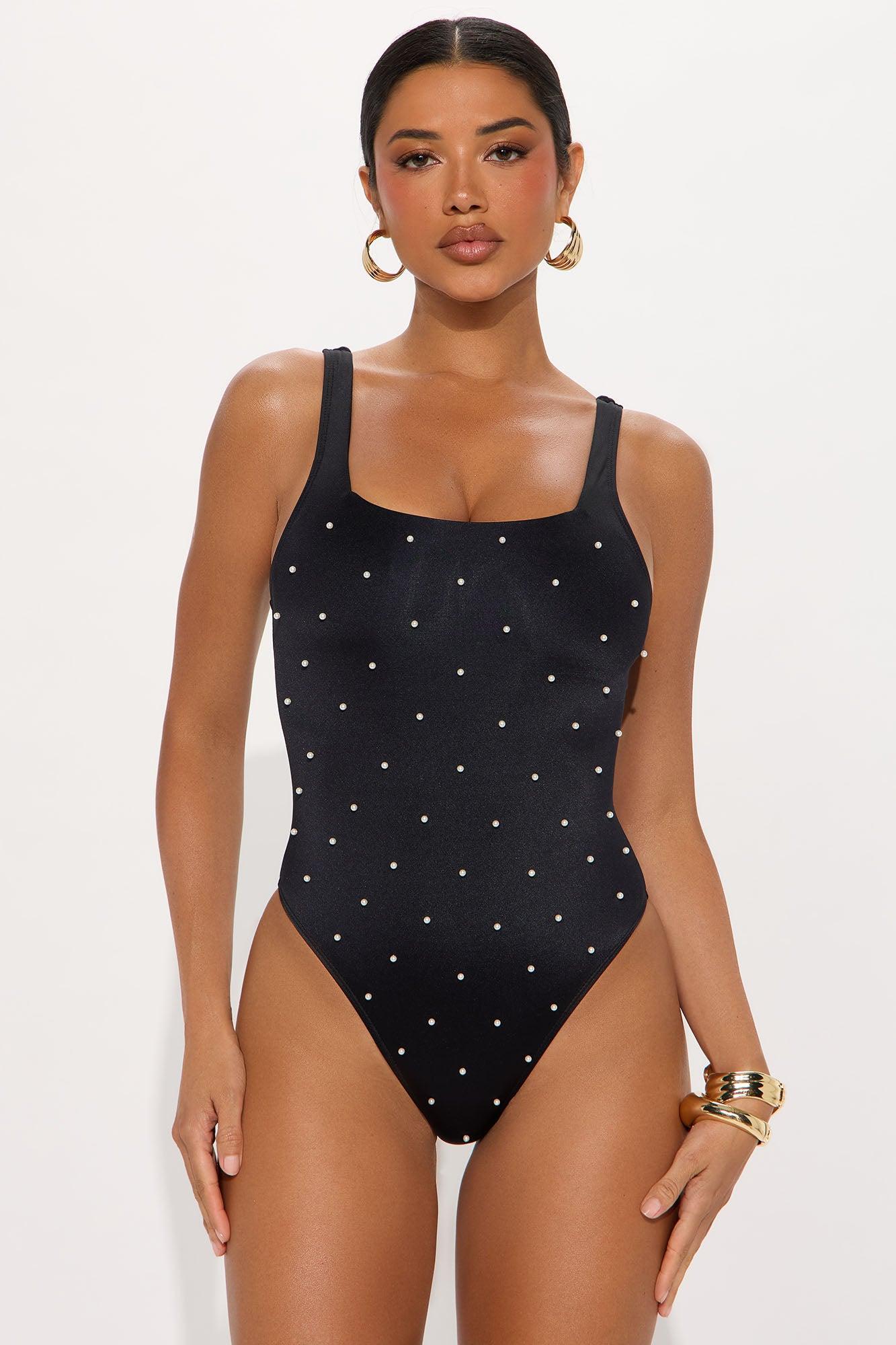 Found Pearls Low Back 1 Piece Swimsuit - Black