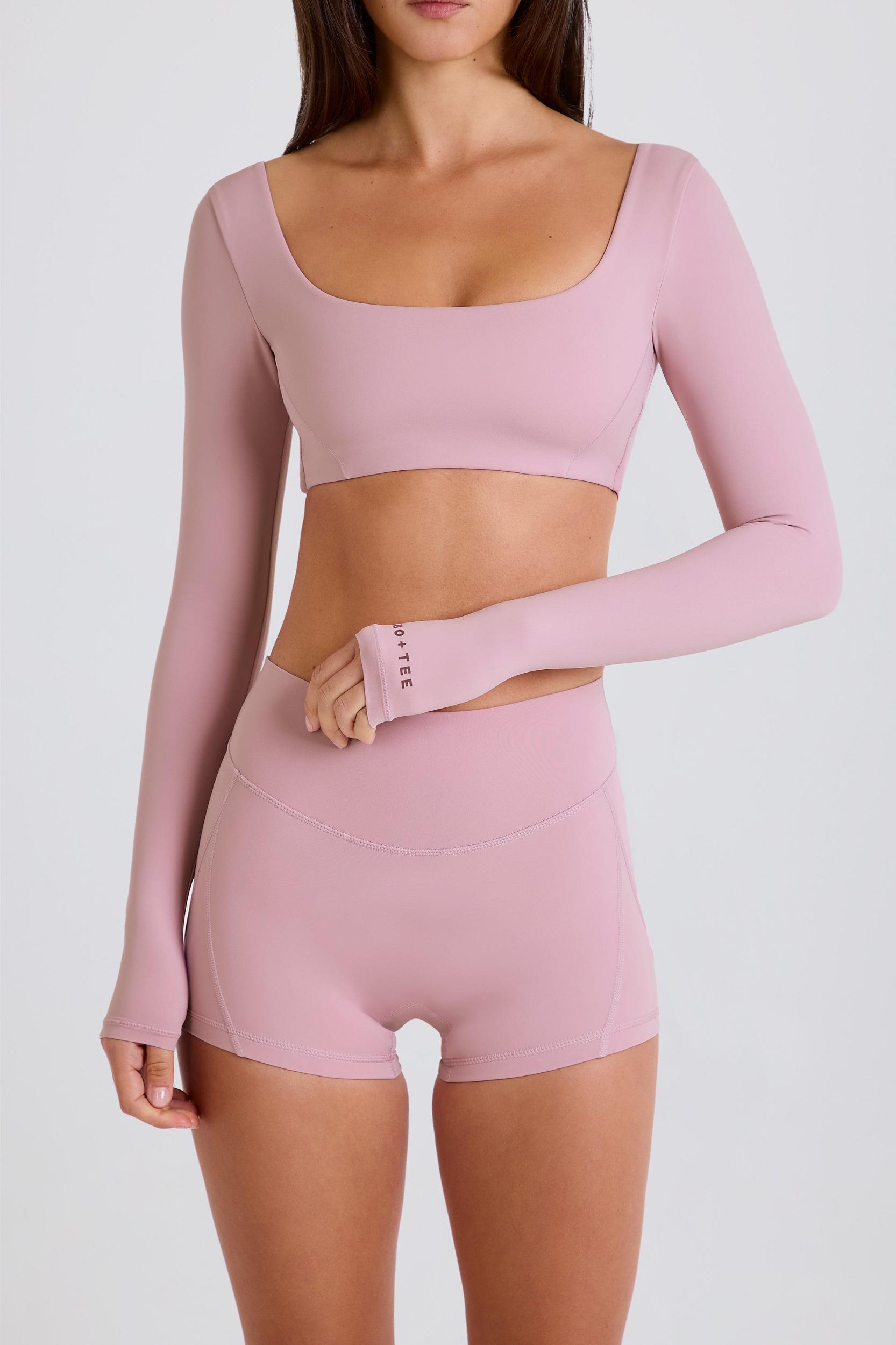 Four-Way Stretch High-Waist Mini Shorts in Mauve