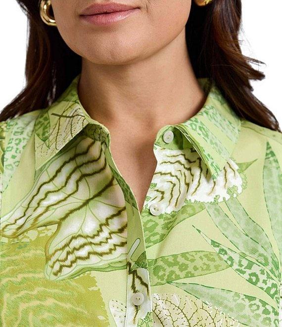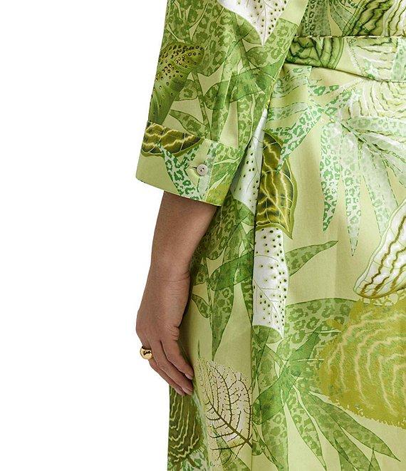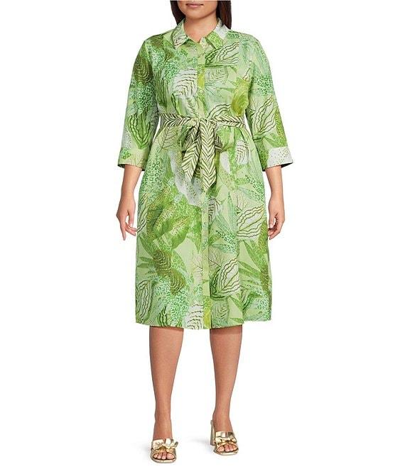 Foxcroft Plus Size Fiona Jungle Print Wrinkle Free 3/4 Sleeve Button-Front Tie Waist Belt Shirtdress