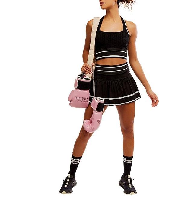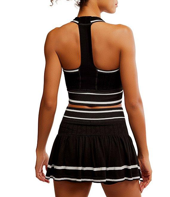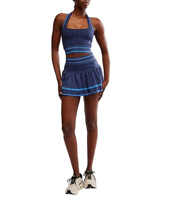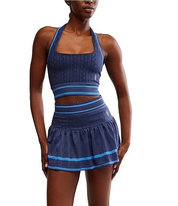 From Free People, this 2-piece skirt set features: Top: Stretch texture fabrication Crop silhouette Halter neckline Sleeveless Vertical strap at back Ribbed trim Fitted fit Straight hemline Pullover construction Approx. 14.5" length Elastane/polyamide Machine wash Skirt: Stretch texture fabrication A-line silhouette High waist Built-in shorts Ruffle skirt overlay Ribbed trim Pull-on construction Approx. 13.25" length Elastane/polyamide Machine wash Imported.