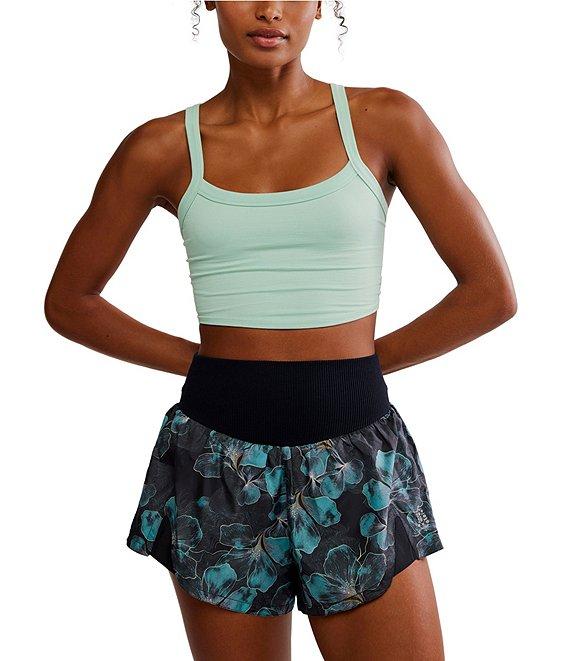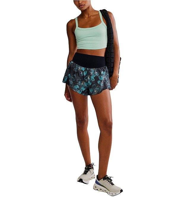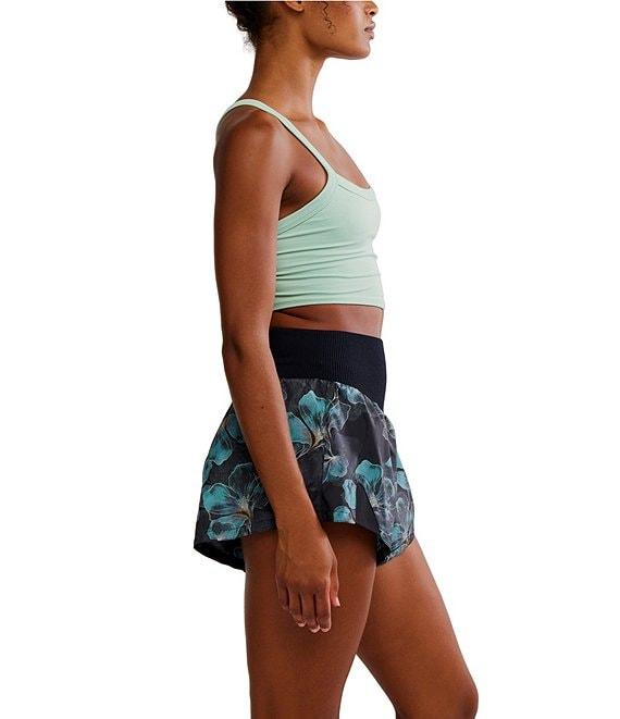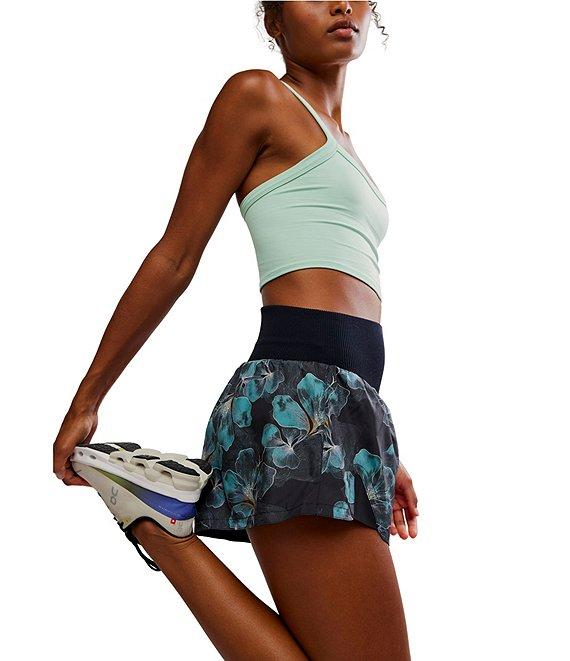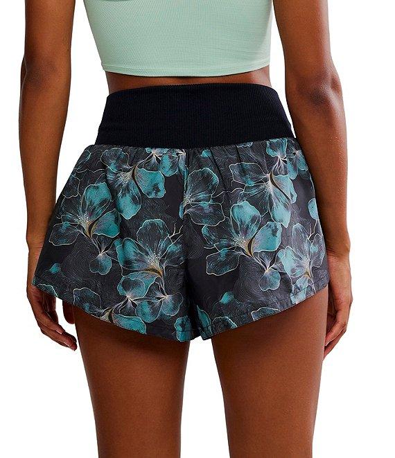 From FP Movement, these shorts feature: Water resistant fabrication Floral print High waisted Pull on construction Interior waistband pocket Built in briefs Approx. 10.5" length, 2" inseam Self: polyester Lining: polyester/elastane Waistband: nylon/elastane Machine wash/tumble dry Imported.