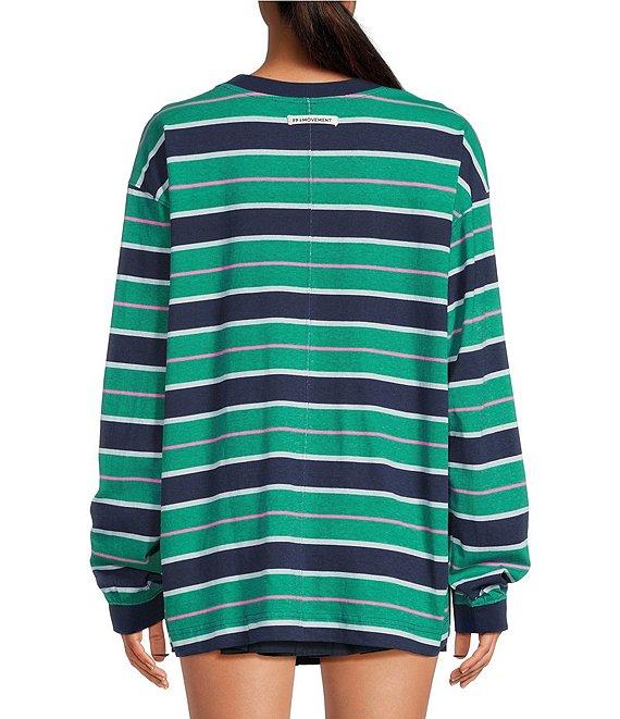 From FP Movement, this top features: Stripe print Scoop neckline Long sleeves Dropped shoulders Pullover construction Defined seaming Side slits Approx. 27" length Cotton Machine wash cold Imported.