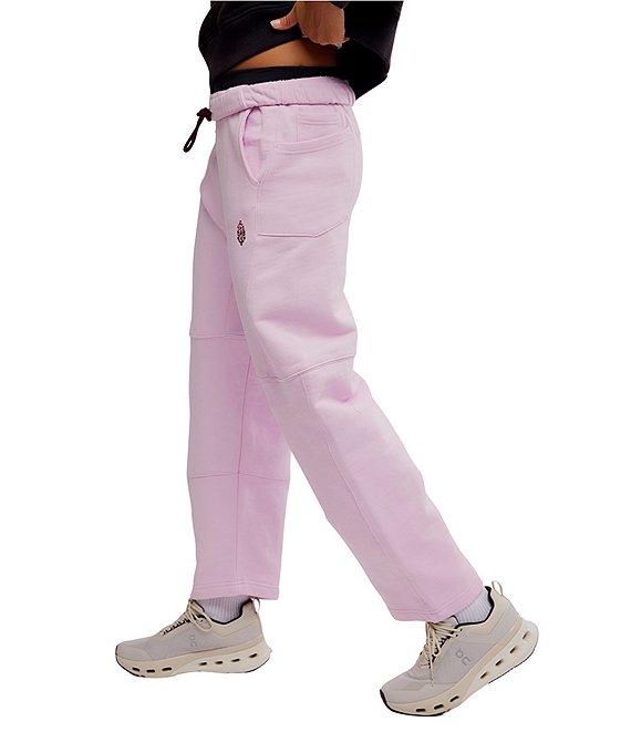 From FP Movement, these pants feature: Slouchy silhouette High rise waist Elastic waist with draw cord Side seam pockets Slightly tapered leg Defined seaming Pull-on construction Approx. 25.25" inseam; front rise: 11.75" length Cotton Machine wash Imported.