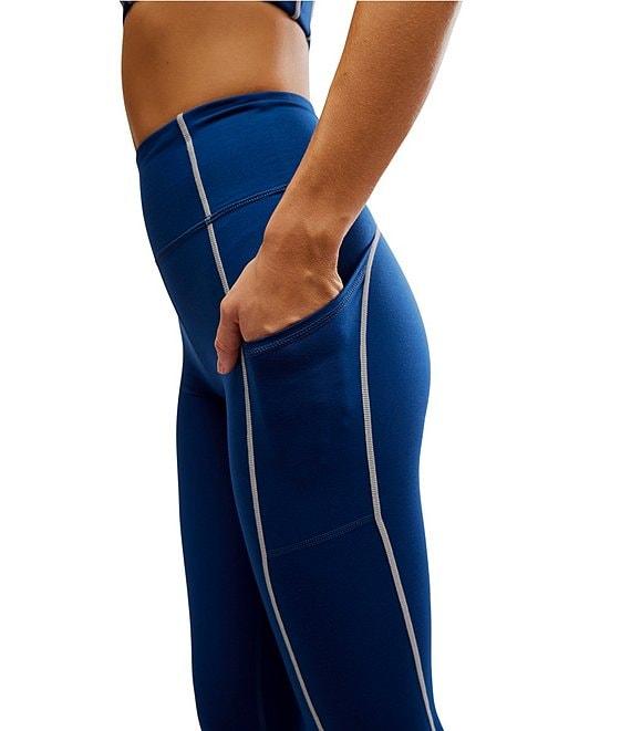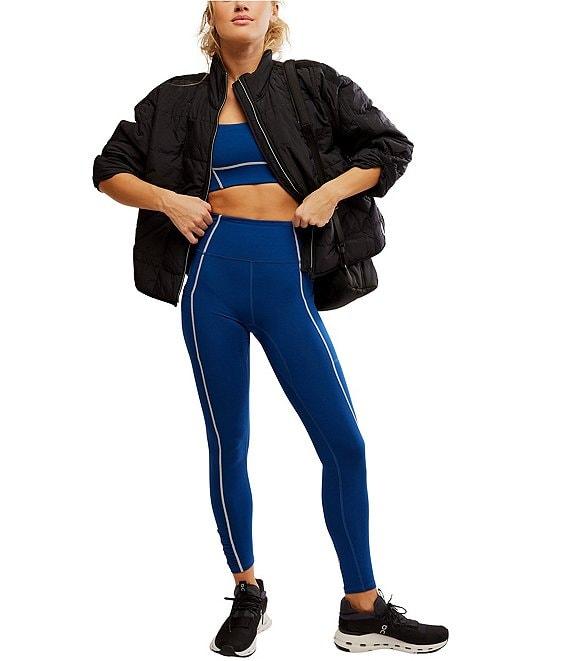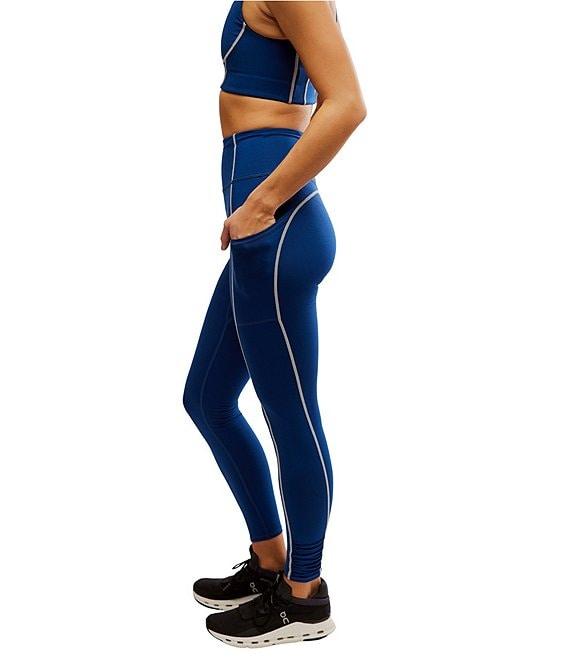 From FP Movement, these leggings feature: High rise waist Full length legging  Pull on construction  Ruched ankle detail Reinforced waistband  Sweat wicking properties  Ultra compressive detail  Reflective trim detail  Approx. 26.25" waist, 10" rise, 26" inseam  Polyester/spandex Machine wash/line dry Imported.
