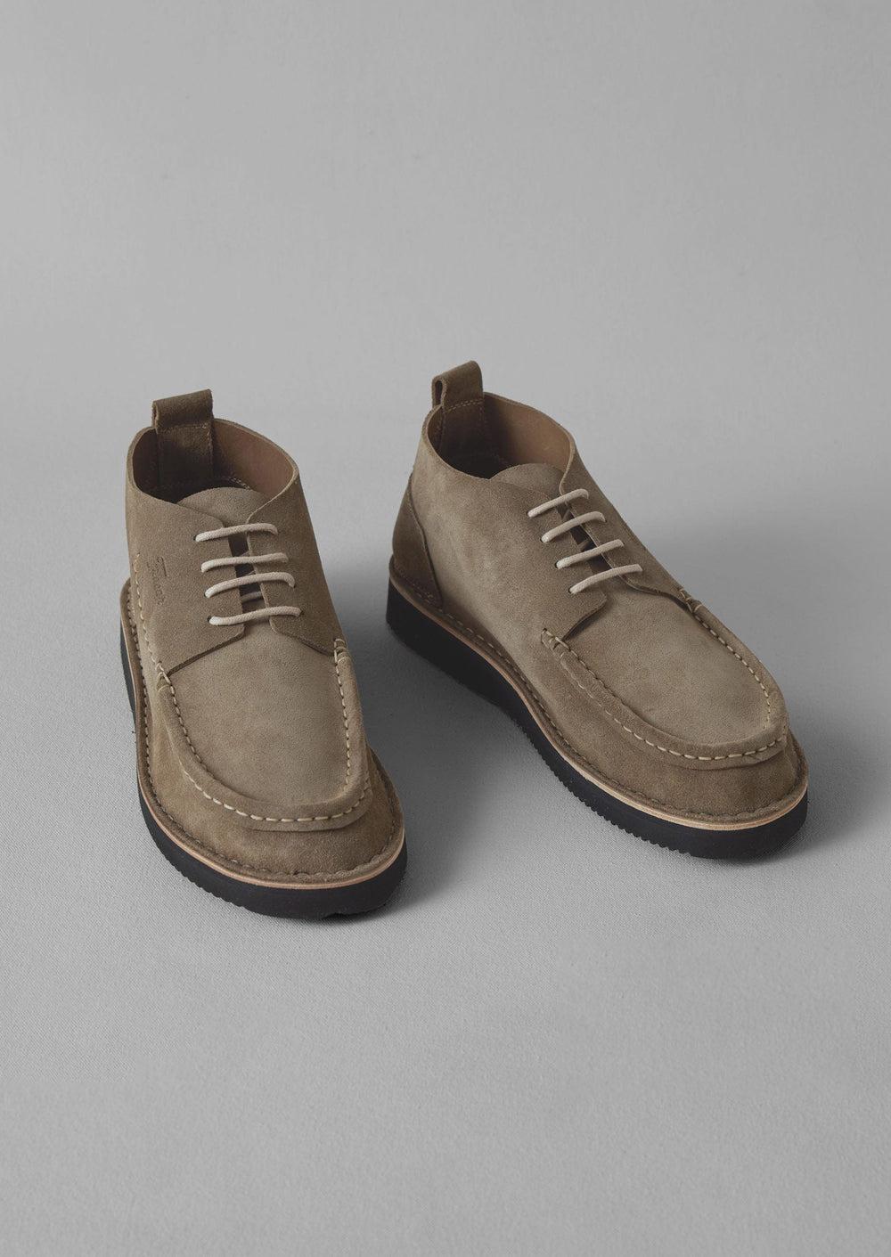 Suede Camp shoes crafted by Fracap, a family-run business based in Puglia, using techniques passed down through generations. Moulded, stitched and finished by hand using the same original process. Made from vegetable-tanned suede and set on a sturdy rubber Vibram sole.