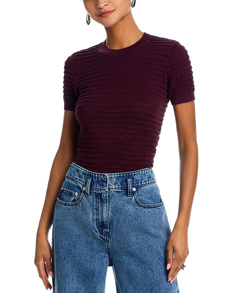 Crafted of a luxurious silk and cotton blend, Frames top boasts a smocked texture and crew neck. Crew neck Short sleeves Pulls on 55% silk/45% cotton Dry clean Imported SIZE & FIT About 18.5 from shoulder to hem Model measurements: 510 tall Model is wearing a US size Small ABOUT THE BRAND In 2012, Erik Torstensson and Jens Grede combined their California-modern point of view with a European sensibility to establish Frame. The ready-to-wear label, first known for its denim, has expanded to leather, cashmere and tailoring-all with an effortless ethos at the core. Focusing on quality fabrics and foundational dressing, the brand delivers chic everyday staples favored by Hollywood starlets and beyond. Contemporary Sportswear - Denim And Bottoms > Frame > Saks Fifth Avenue > Barneys. Frame. Color: Blanc. Size: XS.
