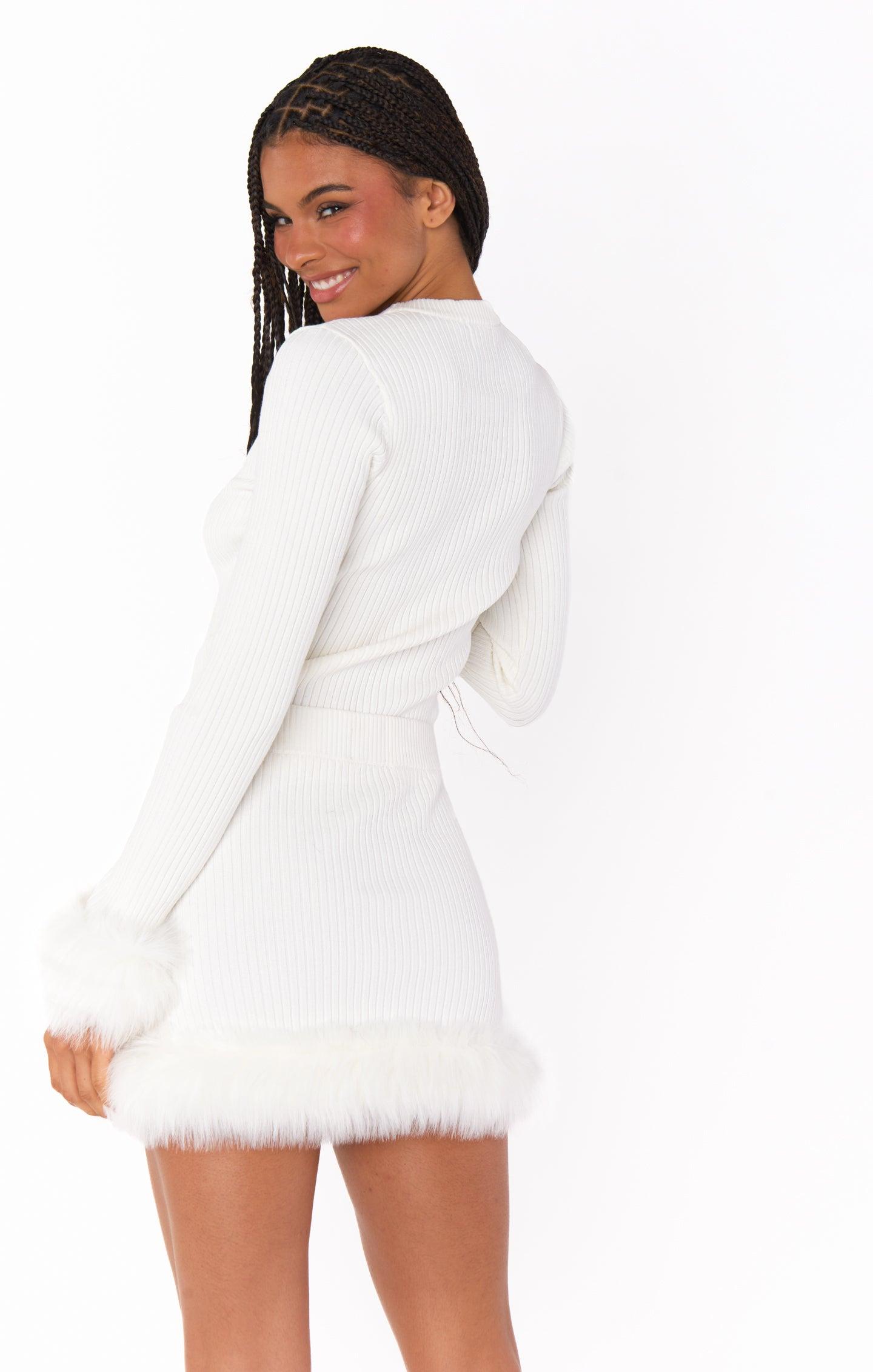Fran Mini Skirt ~ White Knit with Faux Fur