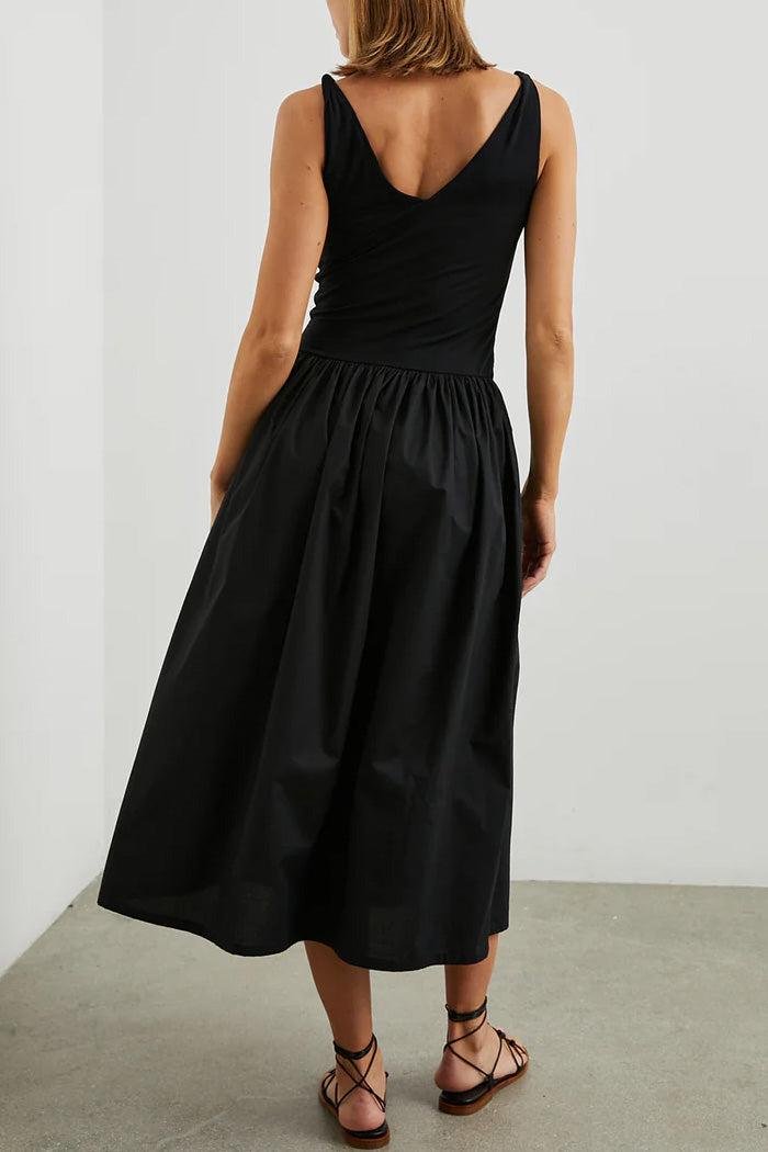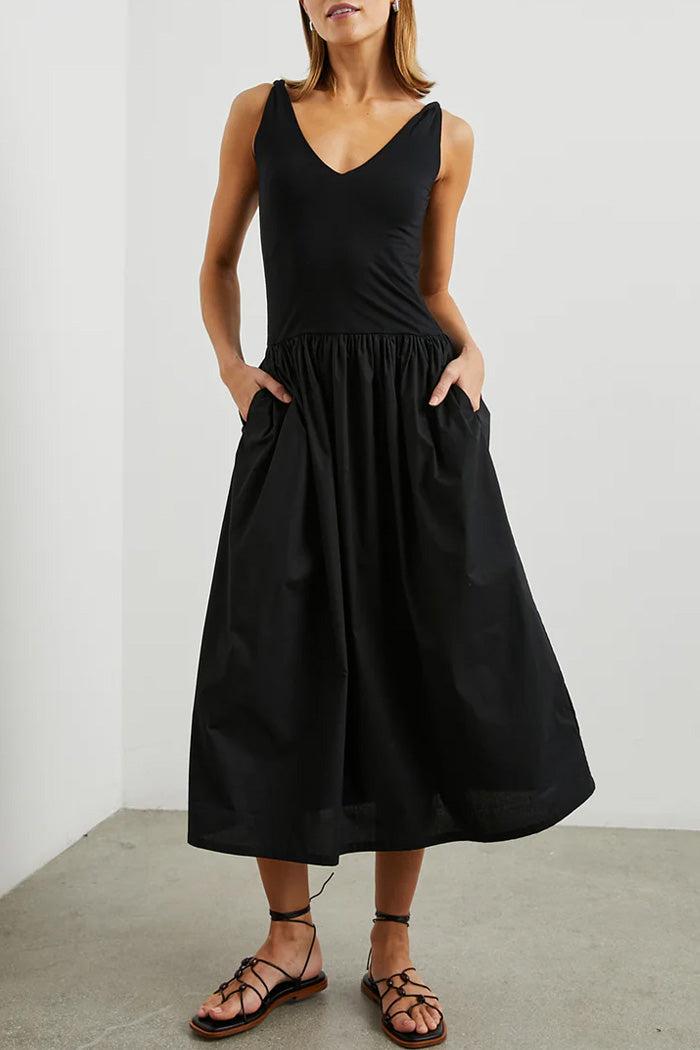 The Franca Dress emphasizes effortless elegance, combining an ultra-soft jersey cotton bodice with a lightweight poplin skirt for all-day comfort. Featuring twisted jersey straps, a flattering dropped waist and on-seam pockets for convenience, this midi, bodycon dress is a must for the modern woman on the go.