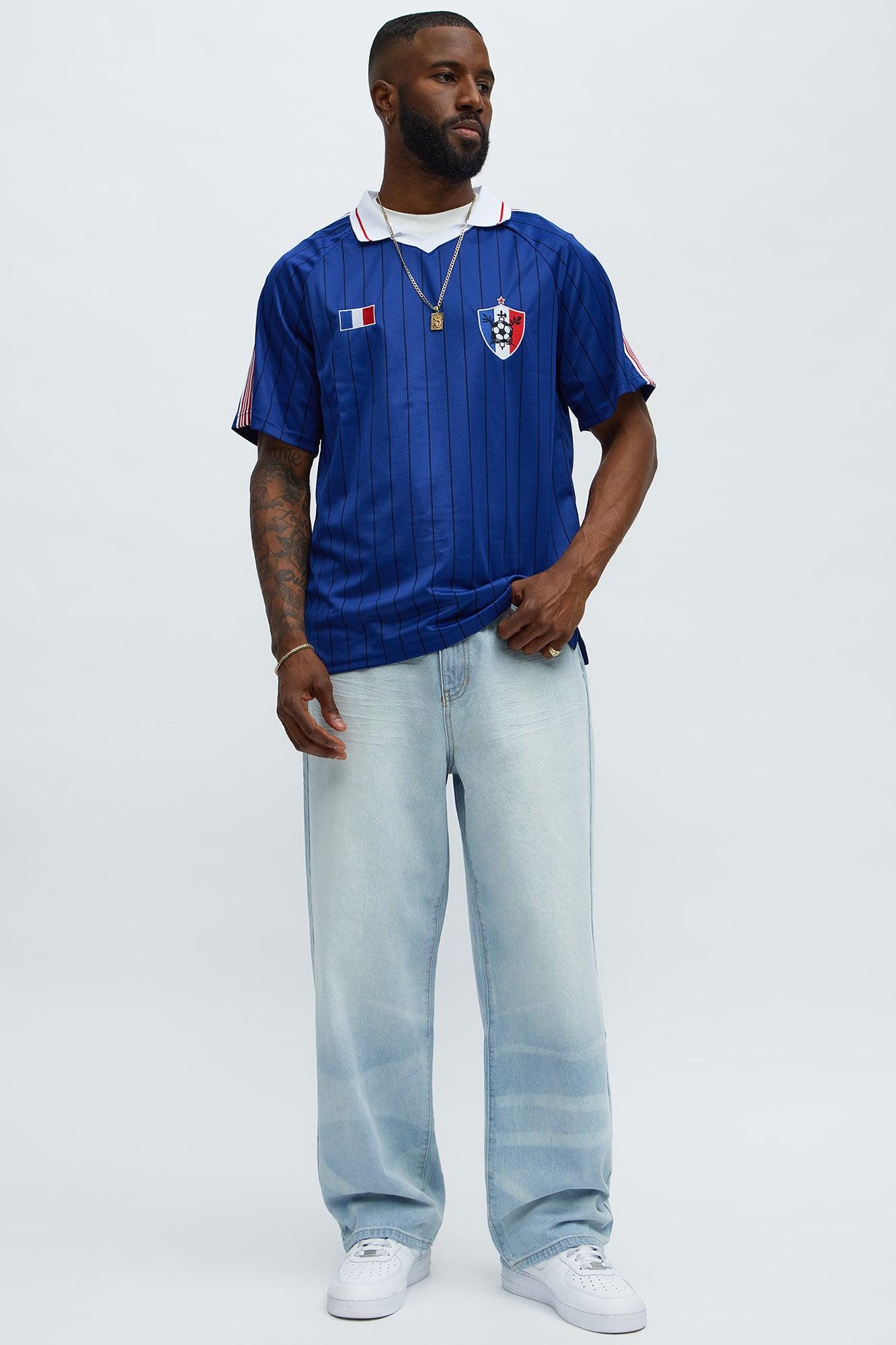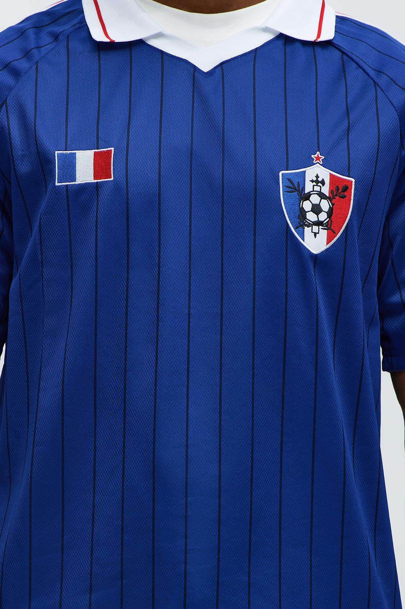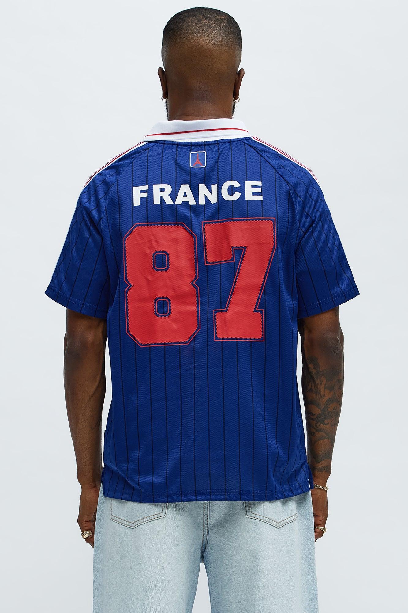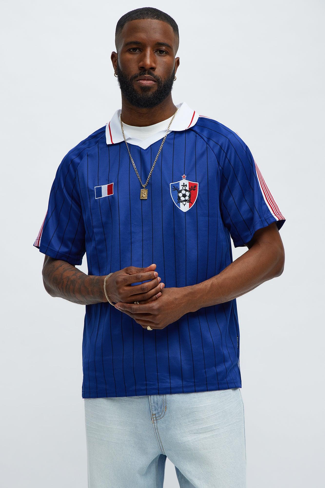 Available In Blue/combo. Johnny Collar Contrast Trim Striped Front Graphic Details Color Block Details Back France Graphic Details Short Sleeves Disclaimer: Due To The Printing Process A Difference In Saturation May Occur. Each Garment Is Unique. 100% Polyester Imported