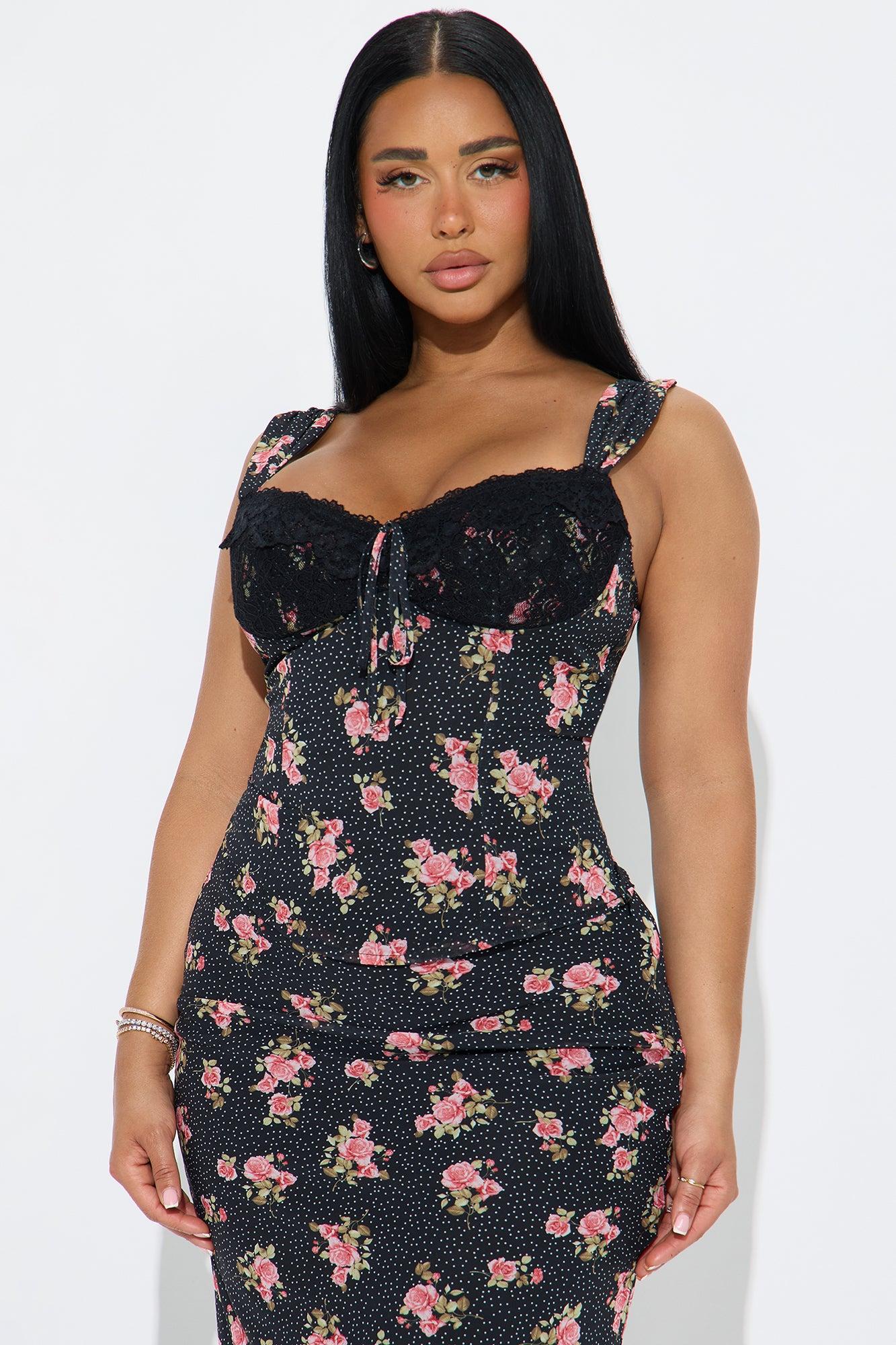 Frances Floral Maxi Skirt Set - Black/Pink Female