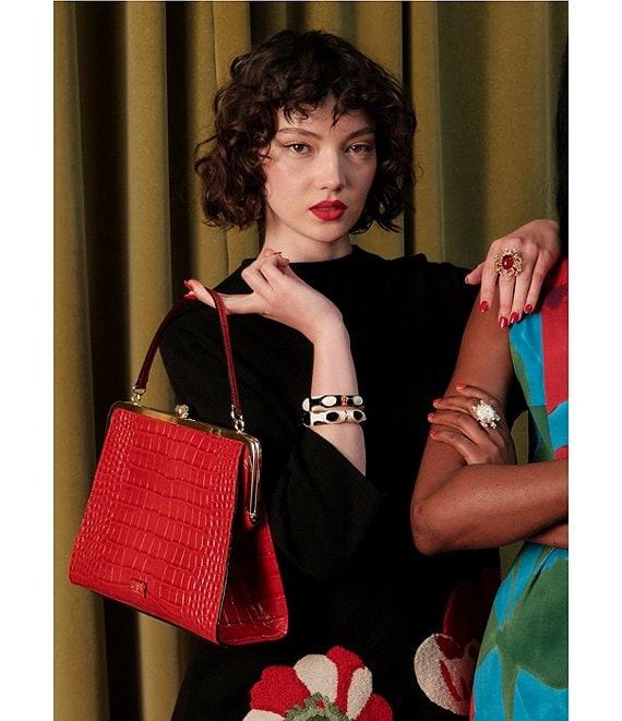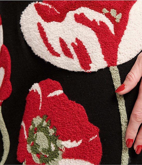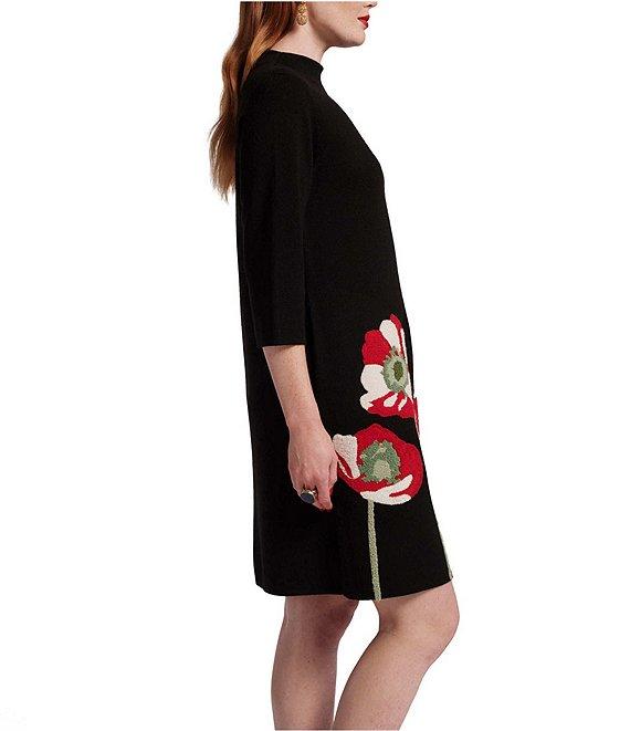 FRANCES VALENTINE Annie Embroidered Paradise Poppy Wool Blend Mock Neck 3/4 Sleeve Dress