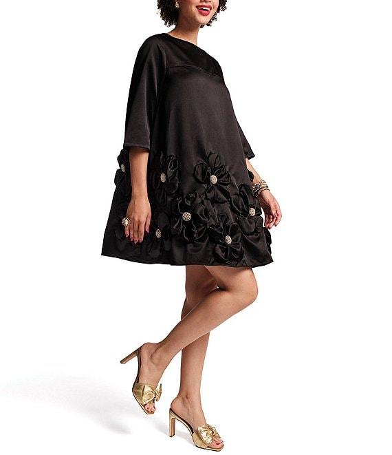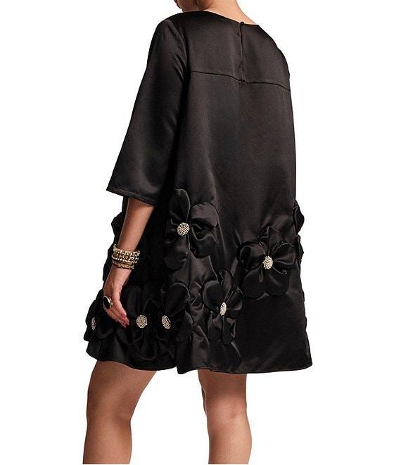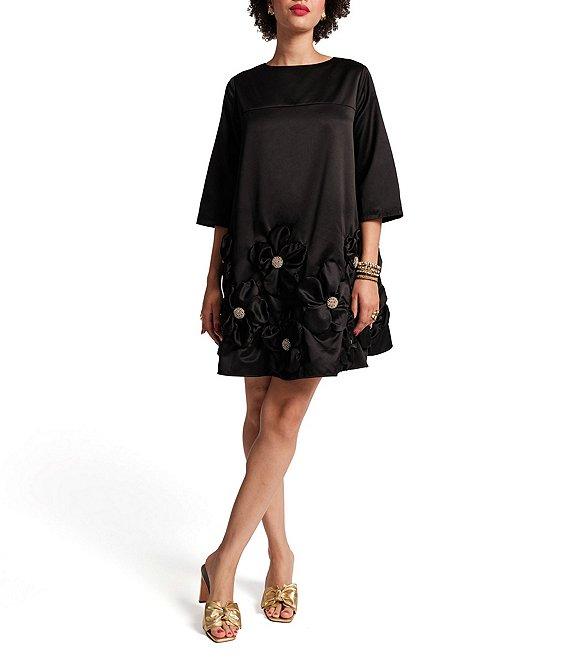 FRANCES VALENTINE Edie Tafetta Floral Applique 3/4 Sleeve Dress