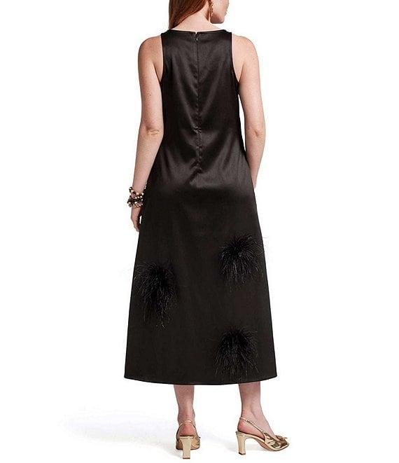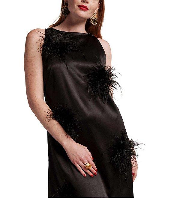 FRANCES VALENTINE Francesca Dutch Satin Feather Pouf Boat Neck Sleeveless Midi Dress