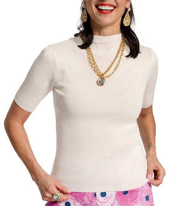 FRANCES VALENTINE Marie Knit Mock Neck 3/4 Sleeve Sweater Top