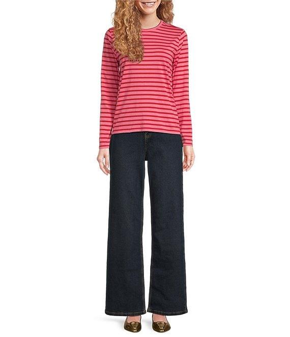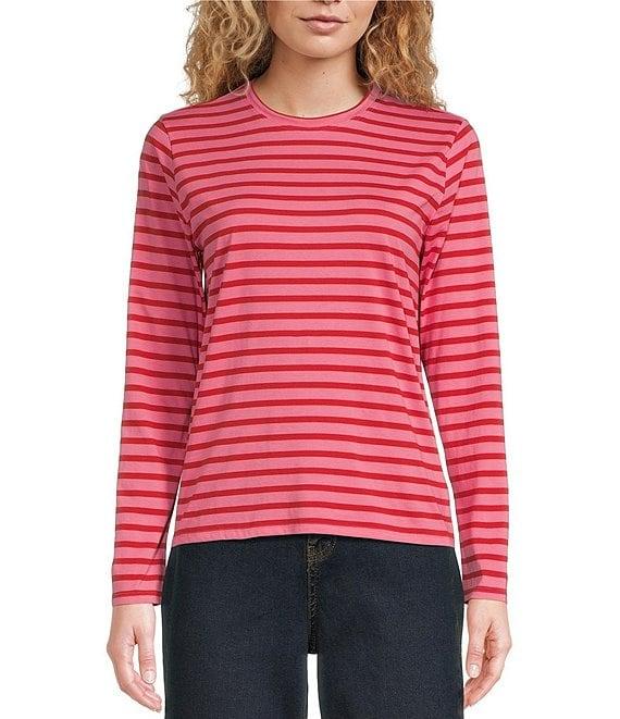 From FRANCES VALENTINE, this shirt features: Soft pima cotton fabrication Crew neckline Long sleeves Contrasting stripe print XO sleeve embroidery Unlined Straight hemline Pullover construction Approx. 24" length Pima cotton Machine wash/dry flat Imported.