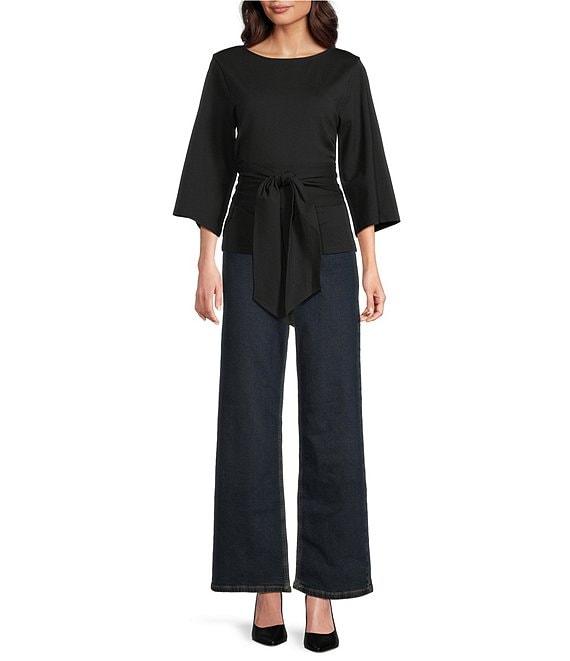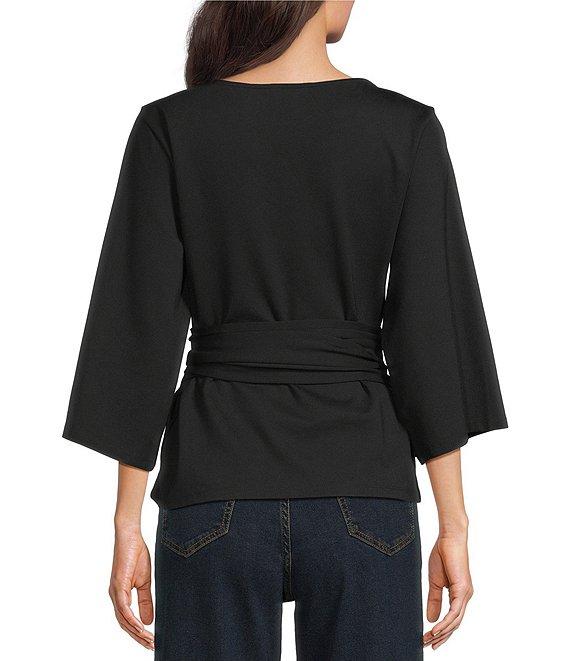 FRANCES VALENTINE Whitney Viscose Blend Boat Neck 3/4 Sleeve Wrap Top