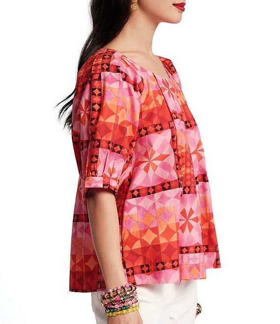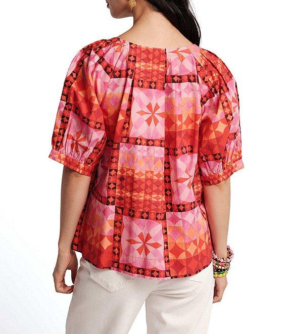 FRANCES VALENTINE Zonda Poplin Mosaic Print Scoop Neck Elbow Sleeve Top