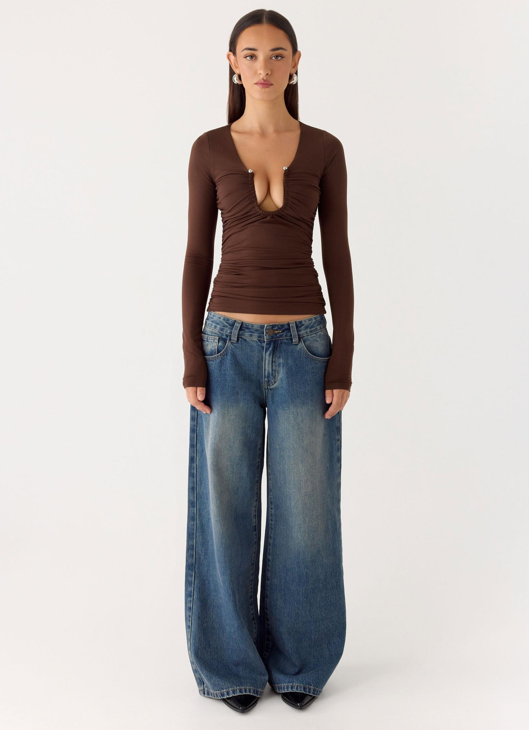 Peppermayo Exclusive The Francis Long Sleeve Top is designed for effortless evening sophistication. Featuring a body-fit silhouette with silver embellishment, it shapes the figure while adding a touch of luxe. Crafted in stretch jersey with a fully lined finish, it moves comfortably while maintaining a polished, editorial look. - Body fit- Silver embellishment- Long sleeves- Fully lined- Jersey- Fabric: 95% Polyester, 5% Elastane Size AU 8 / US 4 garment measurements:Bust: 70 cm / 27.56 inWaist: 60 cm / 23.62 inHem: 74 cm / 29.13 inLength: 110 cm / 43.31 inSleeve length: 66 cm / 25.98 in Roberta is 177cm and wears size AU 6 / size US 2