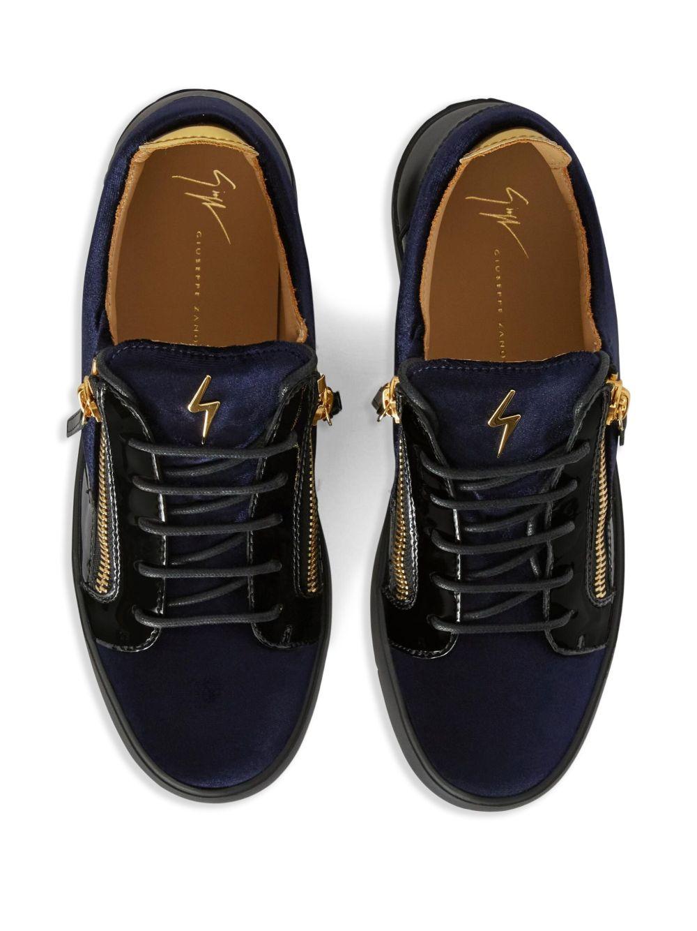 Giuseppe Zanotti Frankie sneakers | Blue | midnight blue | front lace-up fastening | side zip fastening | logo plaque | contrasting heel counter | Fabric/Polyurethane/Rubber/Polyurethane | Low-Tops | Sneakers | Shoes | Men