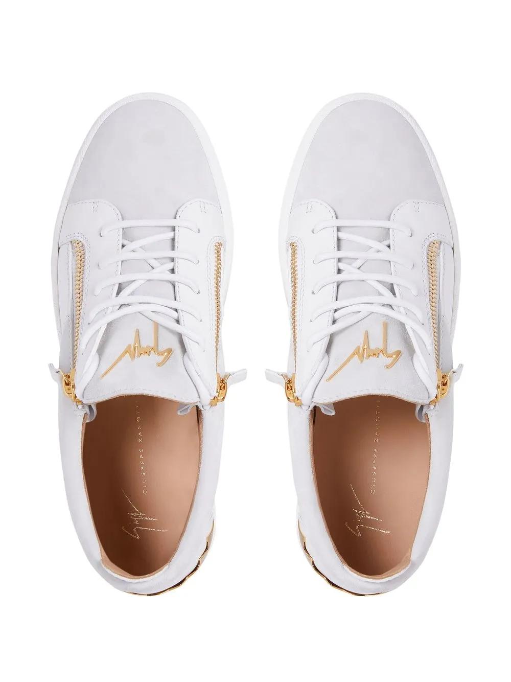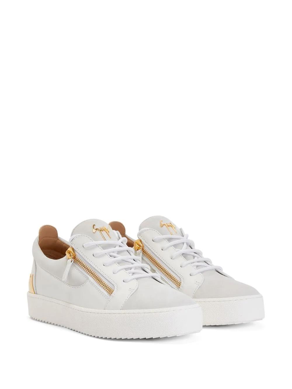 white/gold-tone leather/suede gold-tone logo plaque zip details branded insole round toe front lace-up fastening flat rubber sole