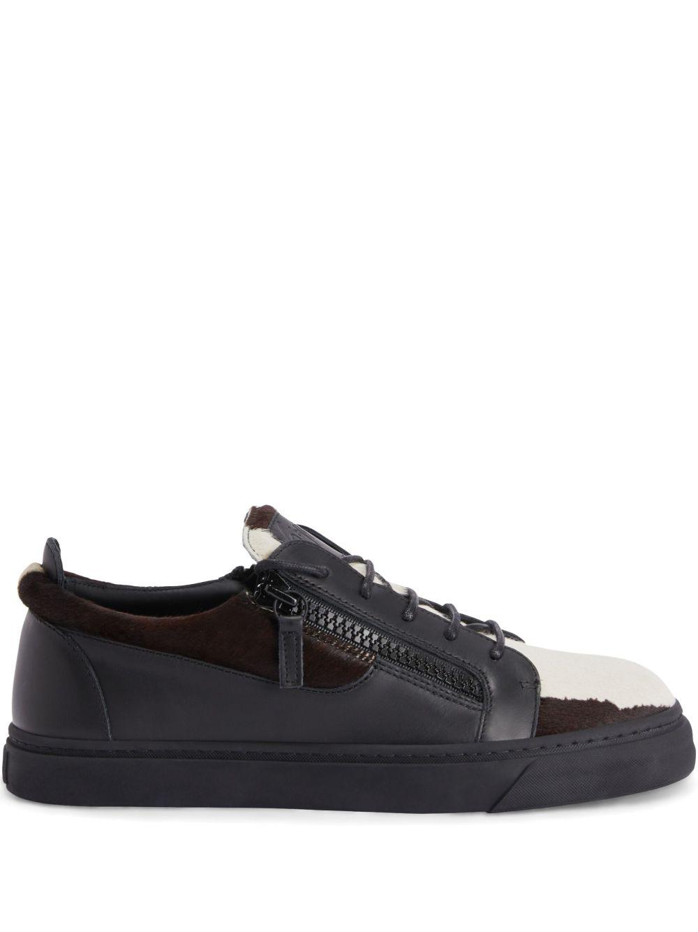 Giuseppe Zanotti Frankie sneakers | Black | black | front lace-up fastening | side zip fastening | flat rubber sole | logo patch at the tongue | Suede/Pony Fur/Calf Leather/Rubber/Calf Leather | Low-Tops | Sneakers | Shoes | Men