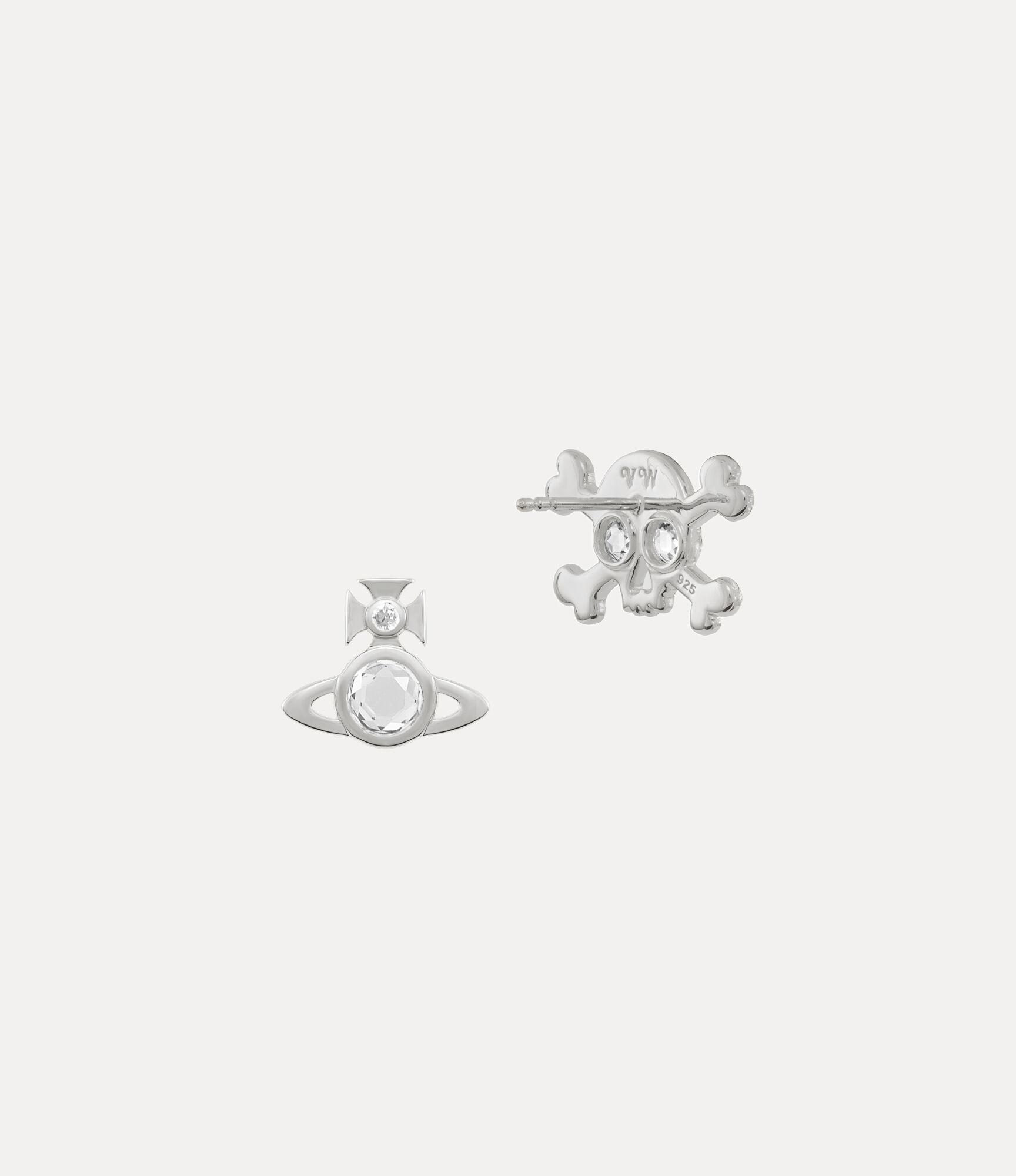 Synonymous with Vivienne's signature punk aesthetic, the Franky earrings offer a skull silhouette, complete with glittering white crystal eyes and platinum-tone plating. The asymmetric design features an orb motif, which symbolises tradition, encircled by the celestial rings of Saturn, symbolising the future.