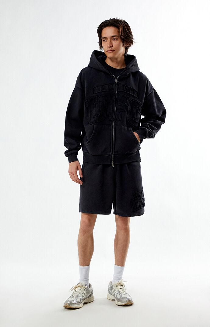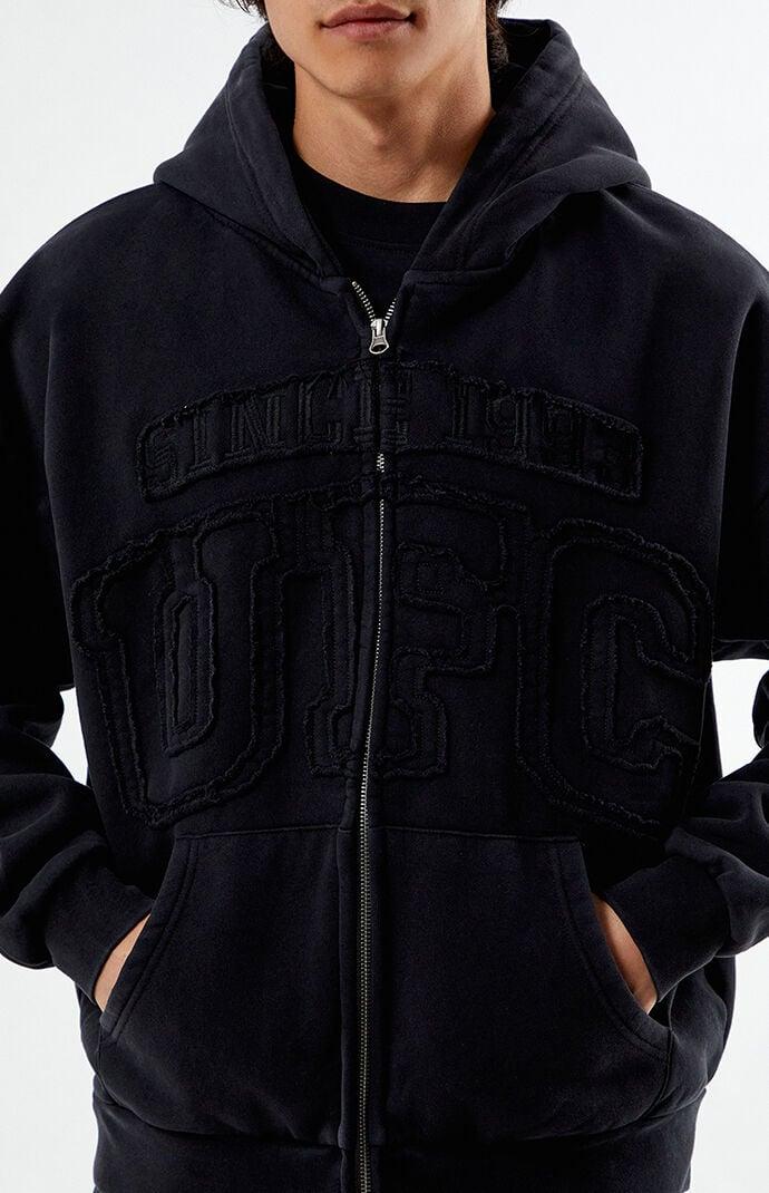 PS Exclusive! Stay cozy and stylish with the Frayed Lettering Full Zip Hoodie from UFC. This hoodie features an attached hood and a full zipper front closure for easy wear. The frayed lettering on the front adds a bold touch, while side hand pockets provide convenient storage for your essentials.