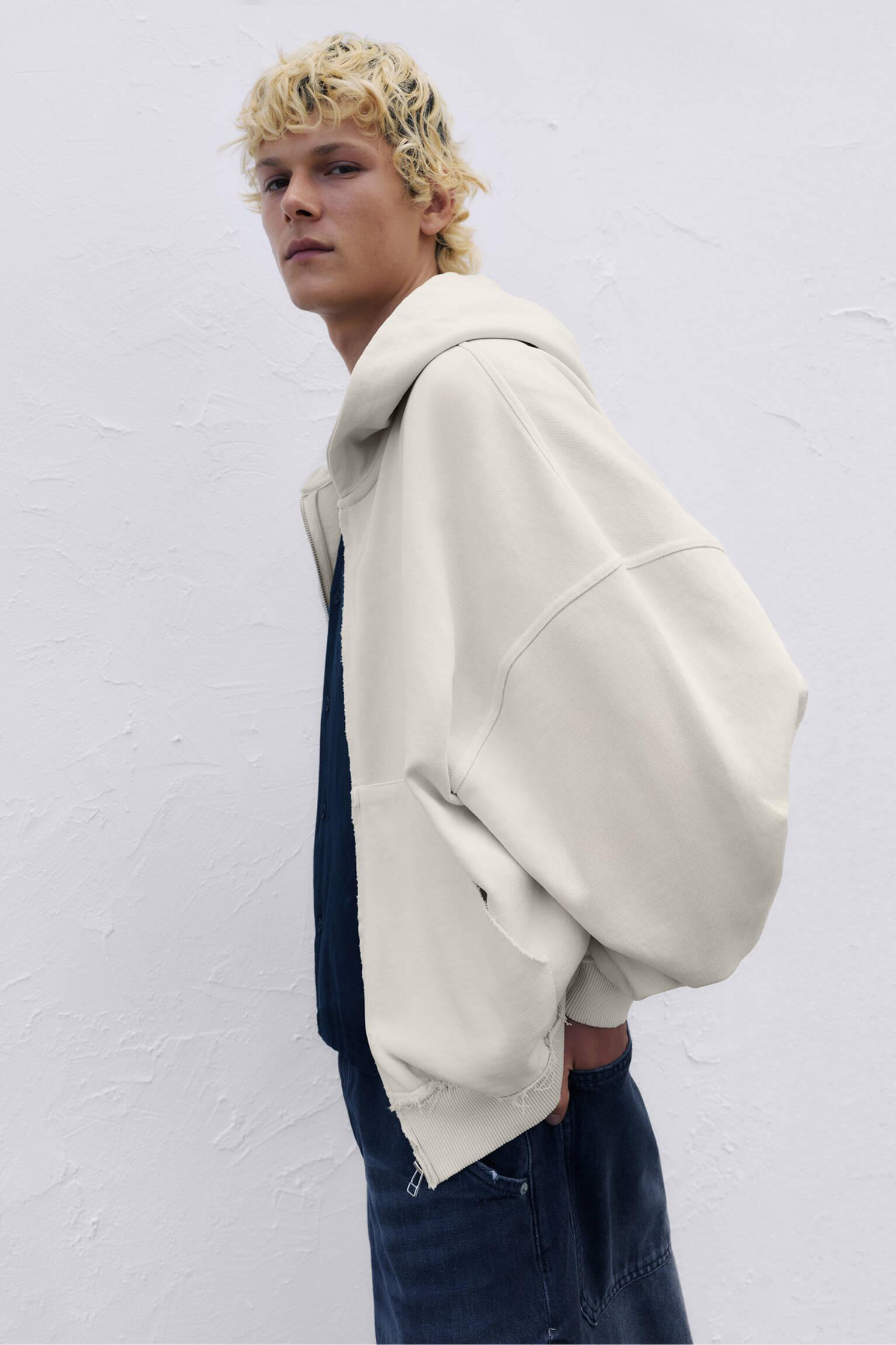 Frayed zip-up hoodie