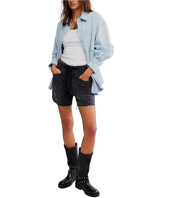 Free People Ashley Denim Oversized Button Front Shirt
