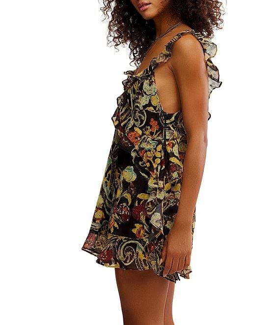 Free People Bali Flora Print Scoop Neck Sleeveless Ruffle Mini Dress