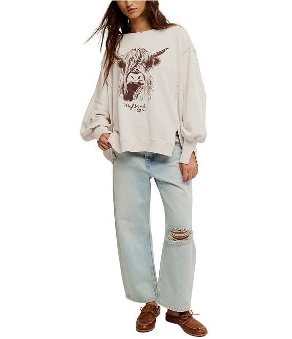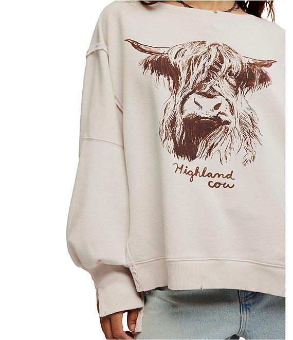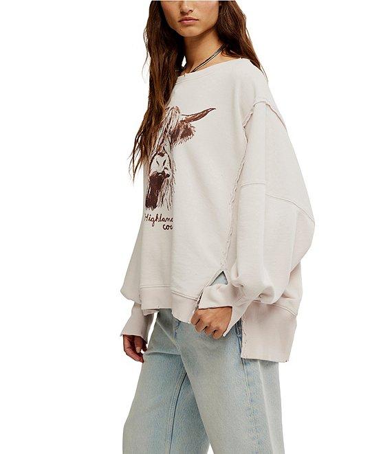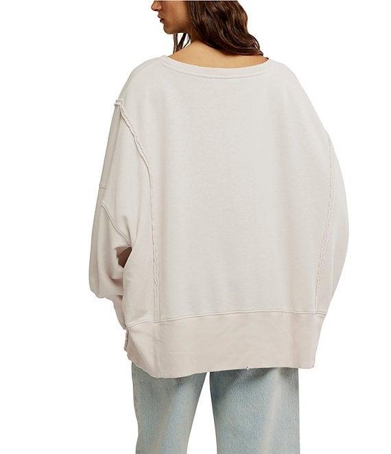 From Free People, this top features: Knit fabrication Slouchy silhouette Scoop neckline Long sleeves Exposed seam detail Side slit detail Ribbed hemline Graphic print Pullover construction Approx. 27.25" length Cotton/polyester Machine wash/dry flat Imported.