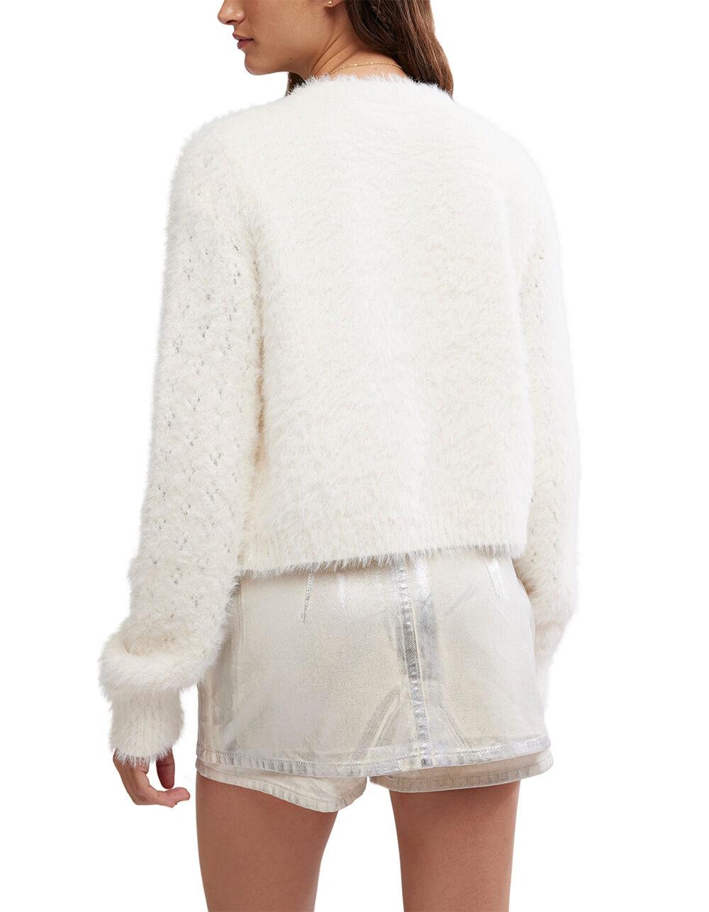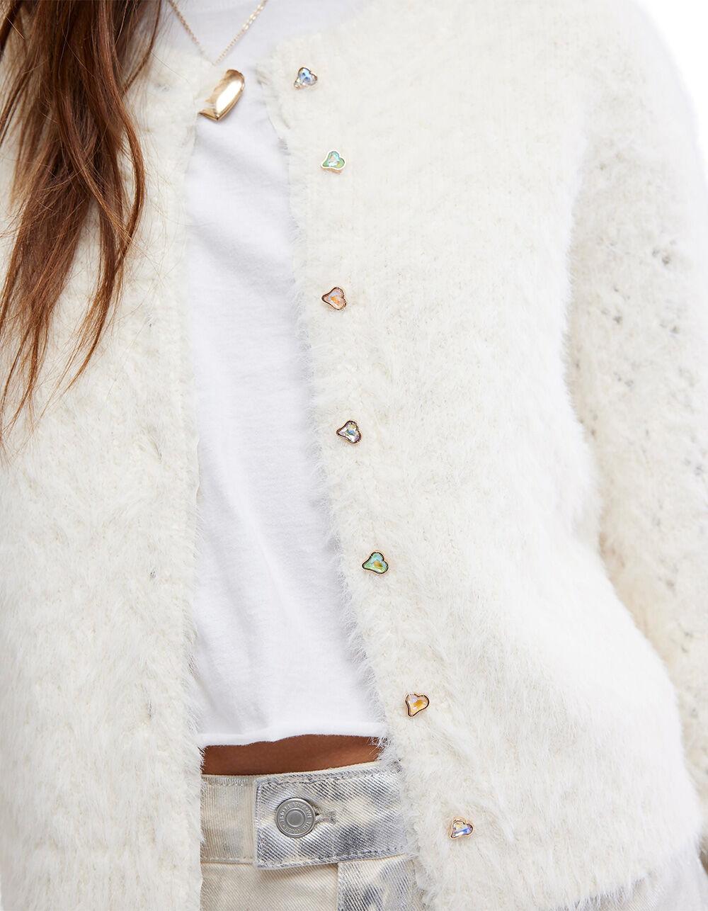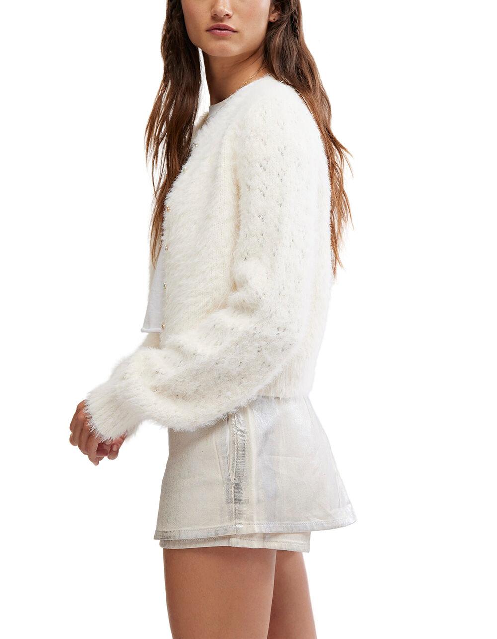 Free People Celeste Cardigan. Fuzzy and femme, this cardi features a soft fabrication and relaxed fit with colorful button closures and pointelle knit detailing.