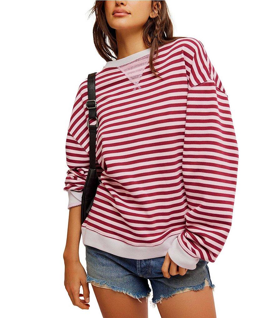 Free People Classic Striped Oversized Crew Neck Long Sleeve Sweatshirt