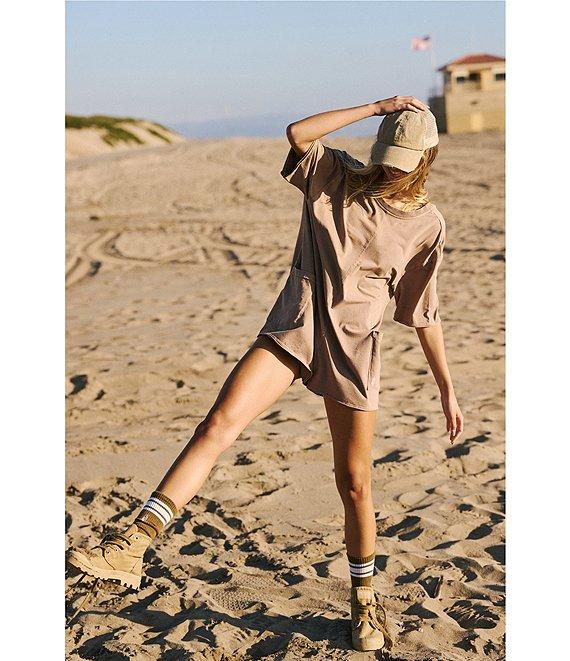 Free People FP Movement Hot Shot Crew Neck Short Sleeve Oversized Patch Pocket V Back Tee Romper