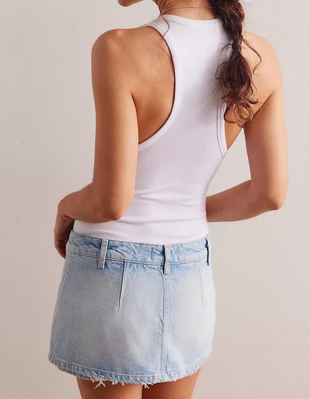 Free People Gallivanting Peekaboo Skort. The perfect micro skort from Free People's We The Free collection, this timeless style is perfect for layering or effortless on its own. Low rise. Relaxed fit throughout. Zip fly and offset button closure. Dart seaming detailing. Soft rigid denim. 2.875" inseam. 10.25" rise. 10.75" length. 64% Cotton 36% Lyocell. Machine wash. Imported.