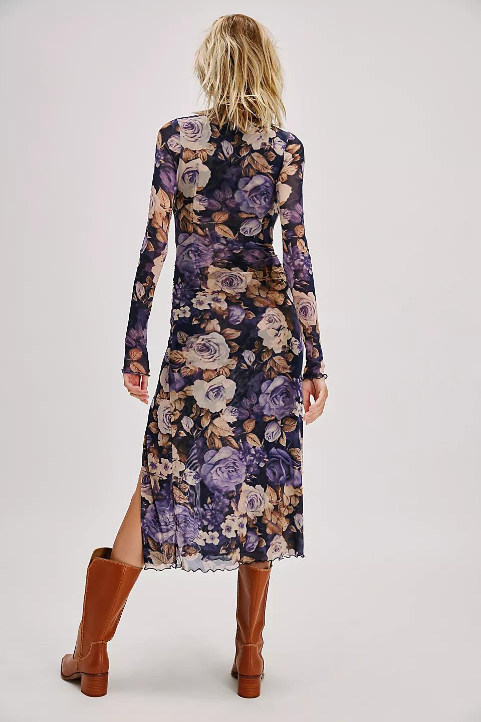Flaunt your femininity and stand out in our Free People Gianni Maxi Dress. This playful printed mesh dress flatters your figure with a gathered waist and exaggerated slit. Perfect for any occasion, add a touch of charm to your wardrobe with this long-sleeve silhouette.
