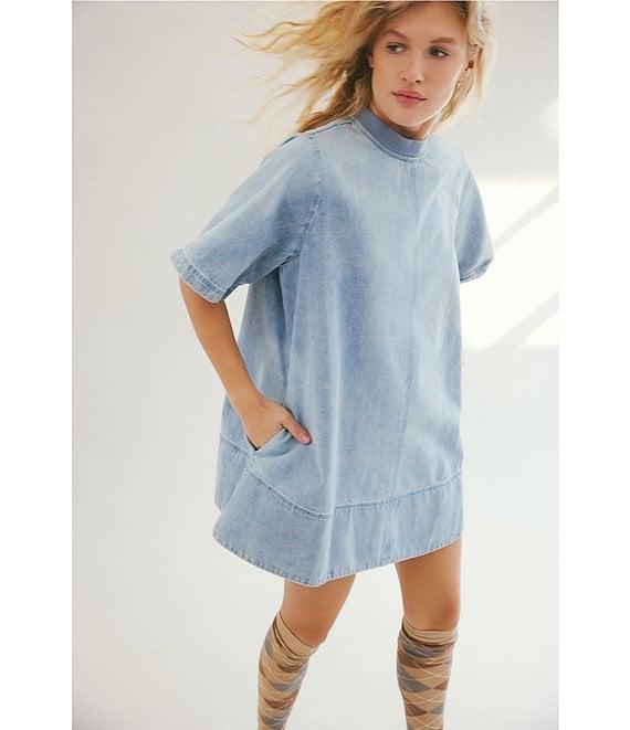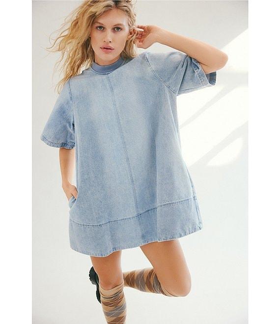 Free People Harlow Crew Neckline Short Sleeve Denim Mini Dress