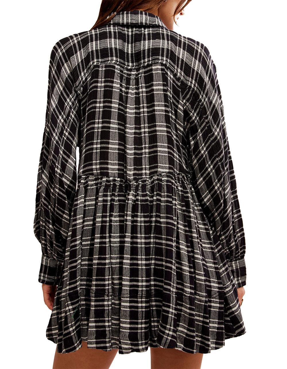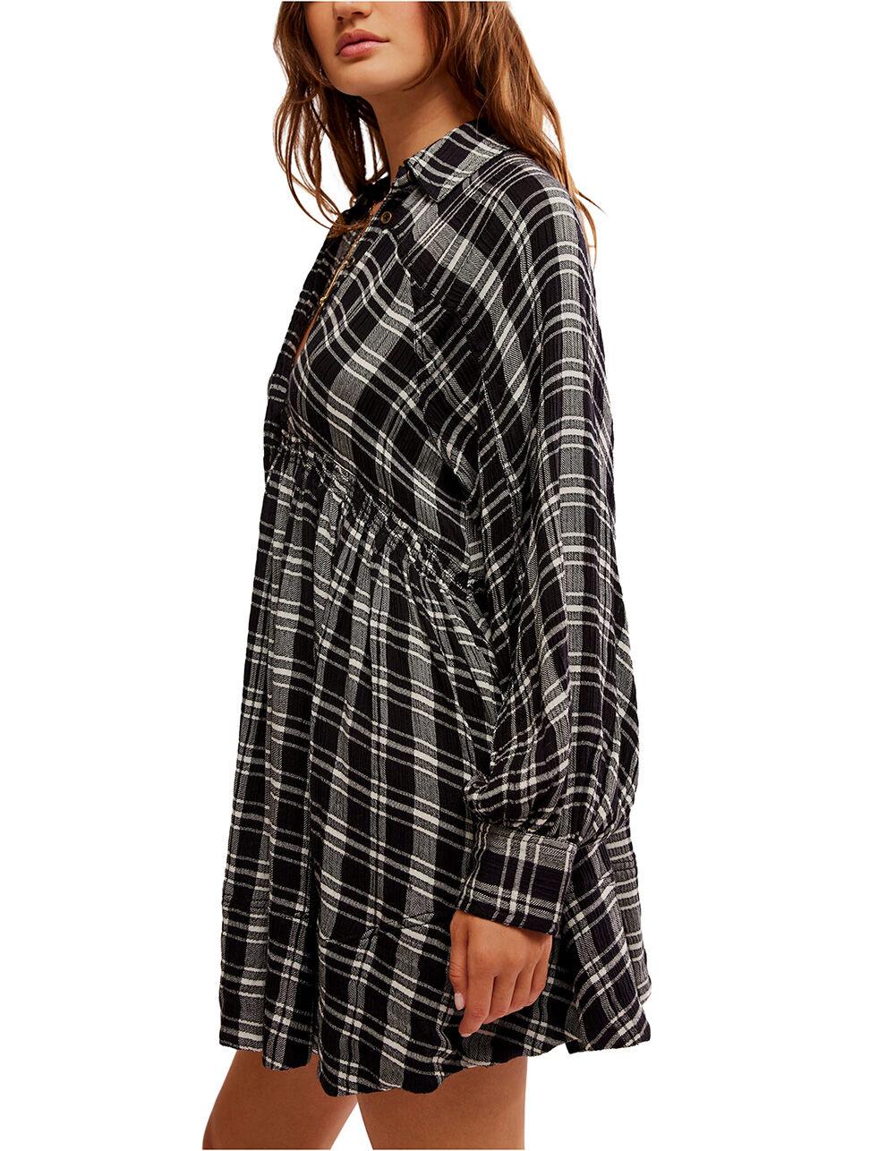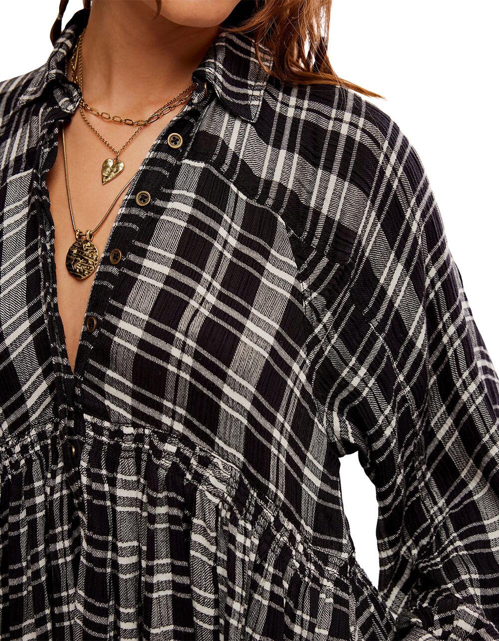 FREE PEOPLE Hoffman Long Sleeve Mini Dress - BLACK COMBO