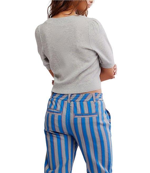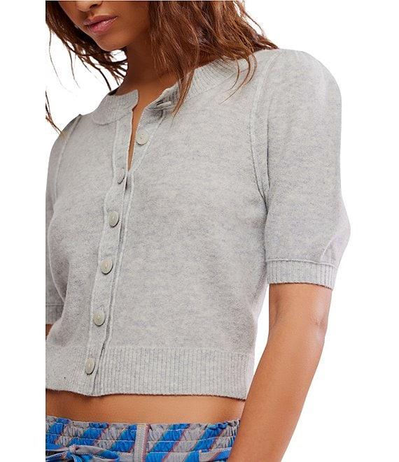 Free People Isla Crew Wool Blend Neck Short Puff Sleeve Button Front Cardigan