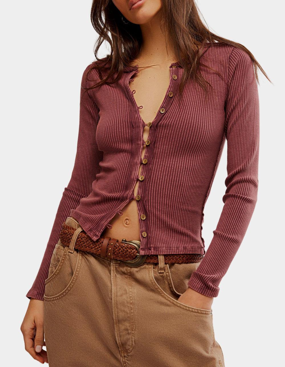 FREE PEOPLE It's On Womens Cardigan - BURGUNDY