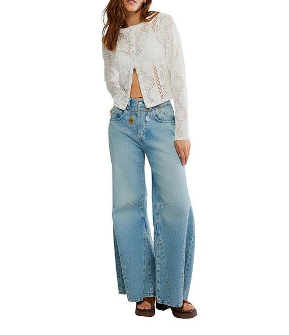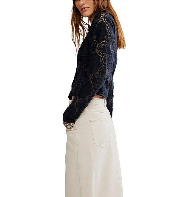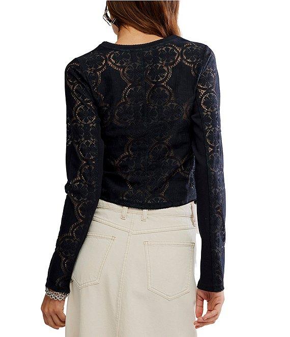 Free People Jae Sheer Cotton Lace Crew Neck Long Sleeve Top