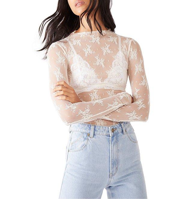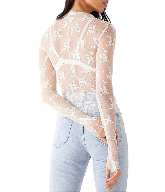 Free People Lady Lux Jacquard Sheer Mock Neck Long Sleeve Layering Top