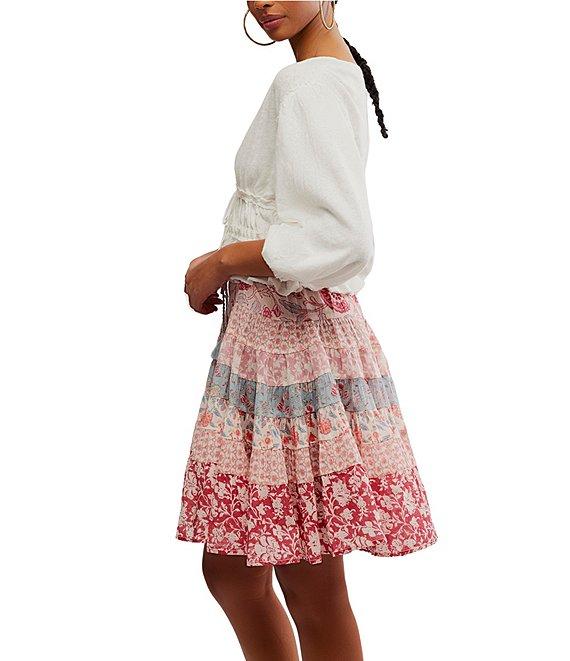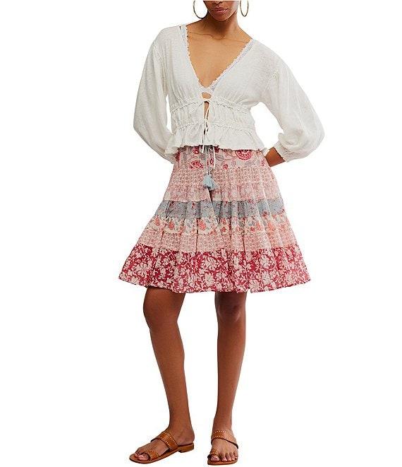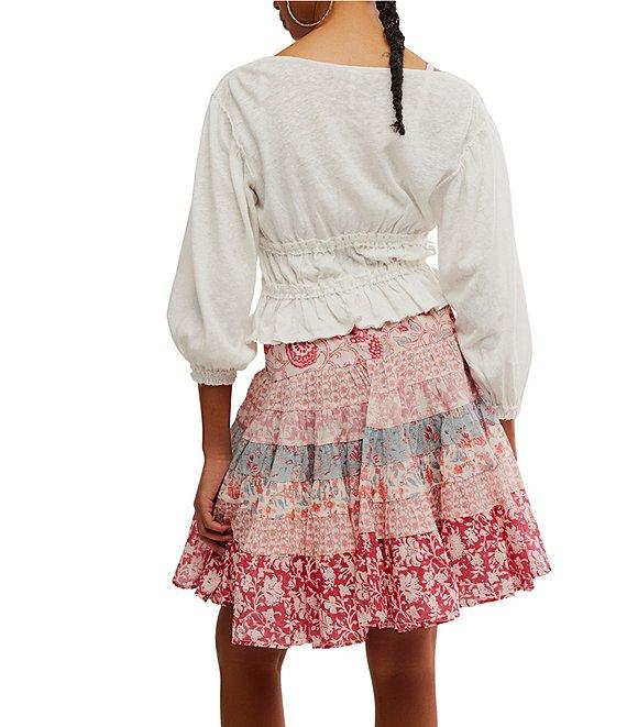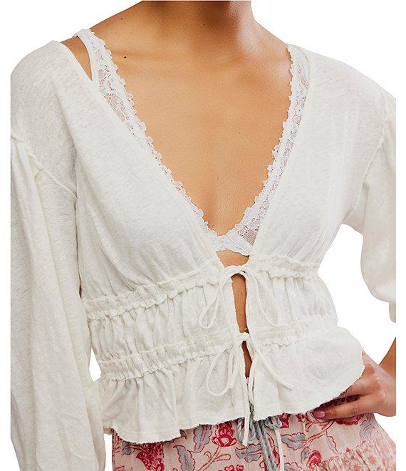 Free People Let's Go Linen Blend Plunge V-Neck 3/4 Sleeve Tie-Front Top
