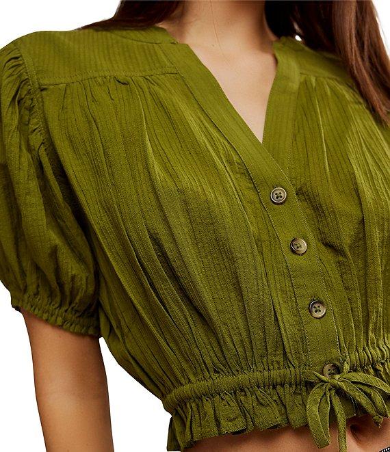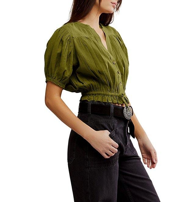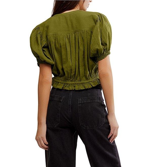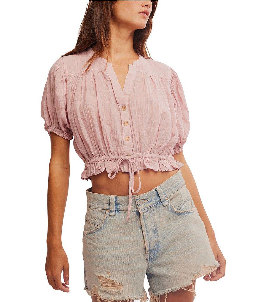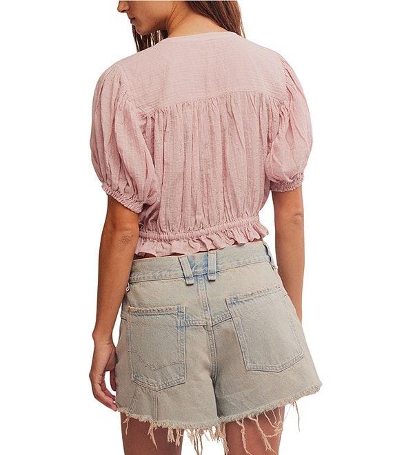 Free People Little Cloud Split Neck Short Puff Sleeve Shirt