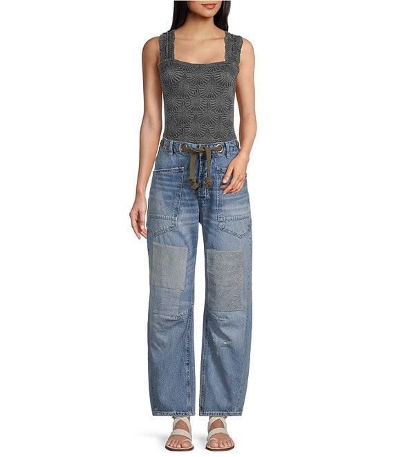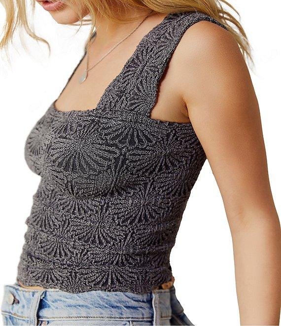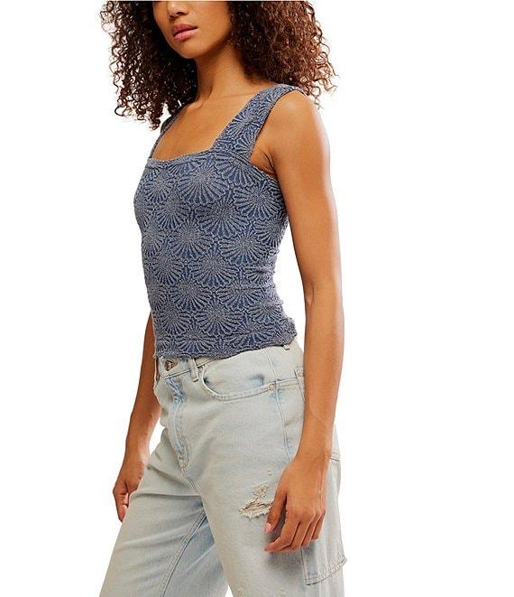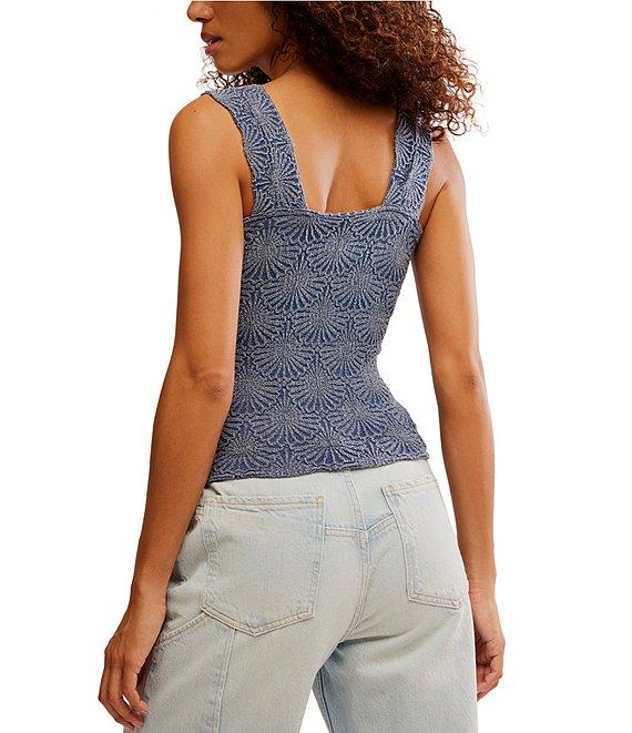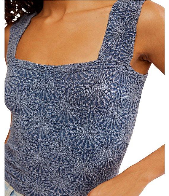 Free People Love Letter Jacquard Floral Square Neck Sleeveless Wide Strap Cami Top